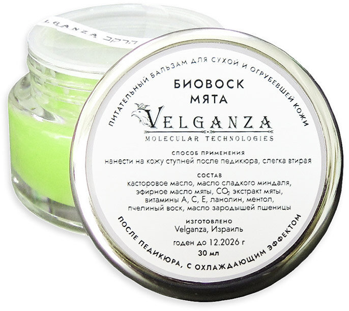 Velganza, Биовоск для сухой и огрубевшей кожи с ароматом мяты, 30 мл информация: