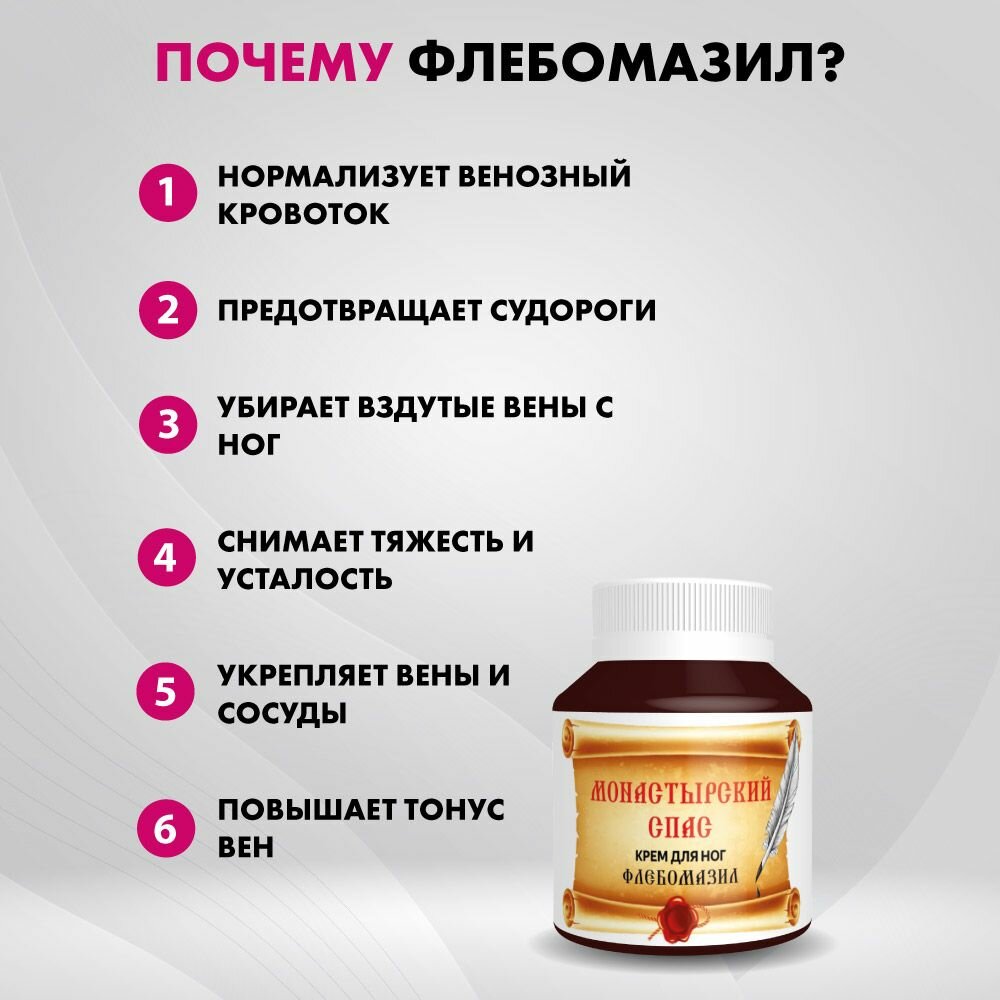10 цен на Монастырский спас крем для ног "Флебомазил"от варикоза от тяжести в ногах охлаждающий, мазь от боли и усталости ног