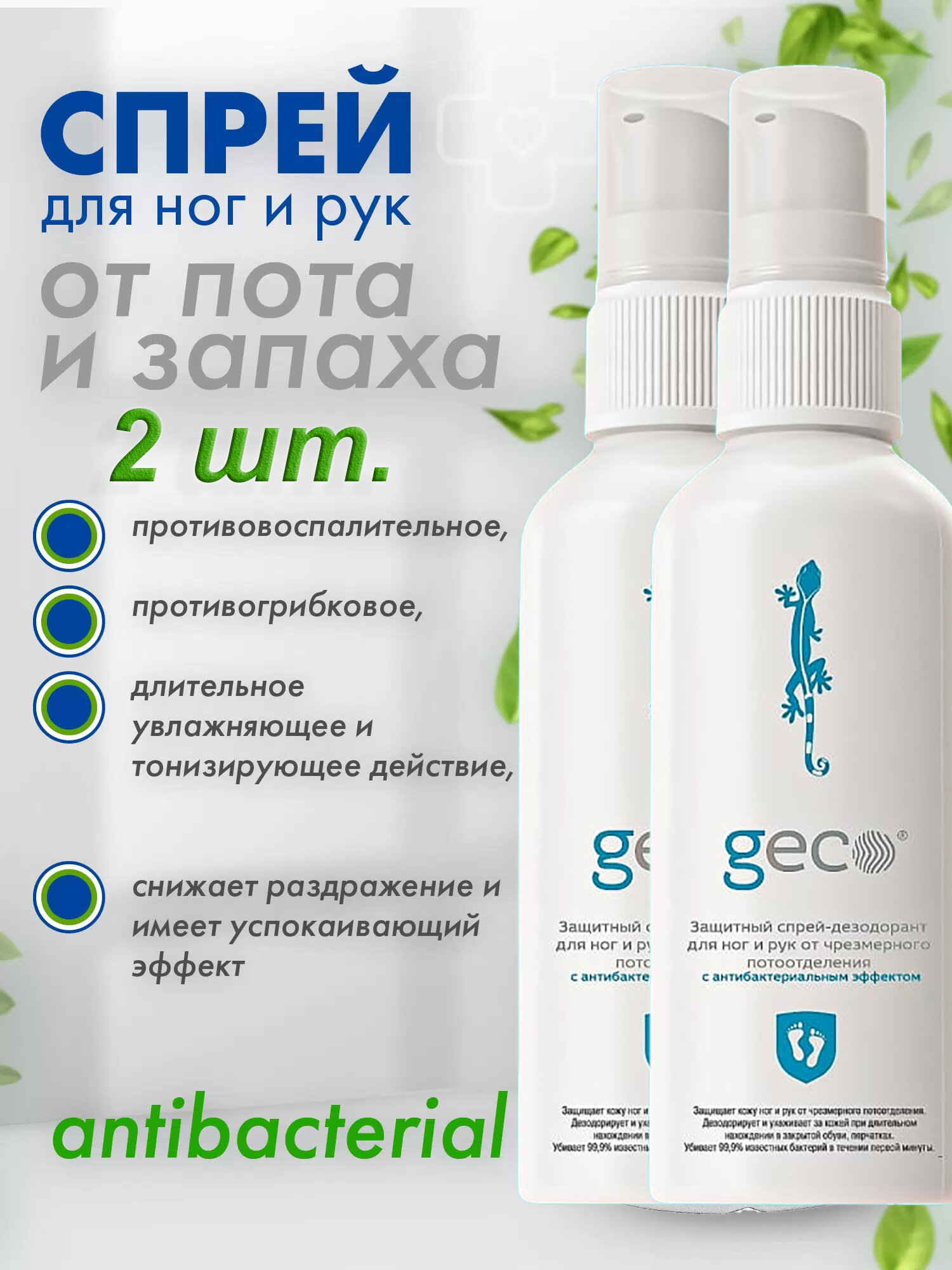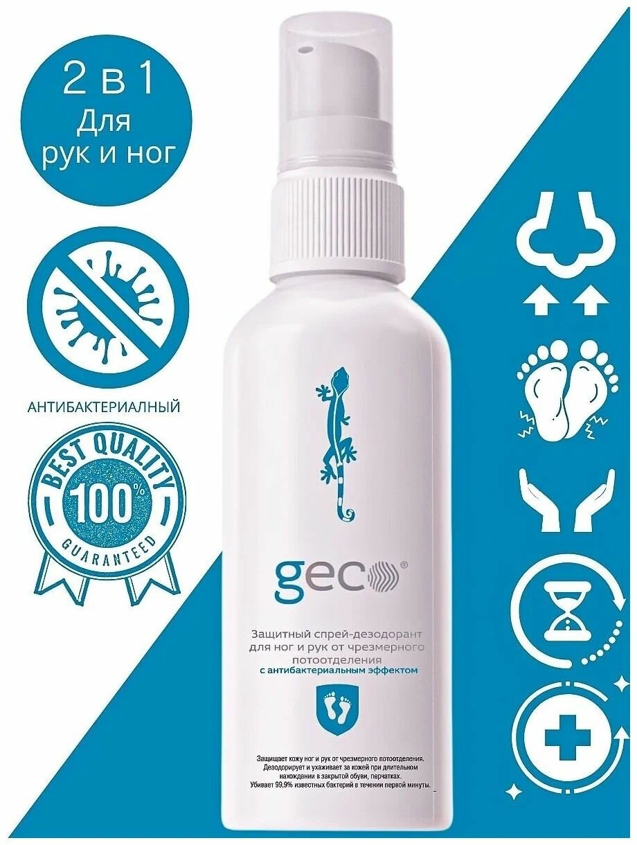 Защитный спрей-дезодорант для ног и рук от чрезмерного потоотделения с антибактериальным эффектом GECO 100 мл. х 2 шт. информация: