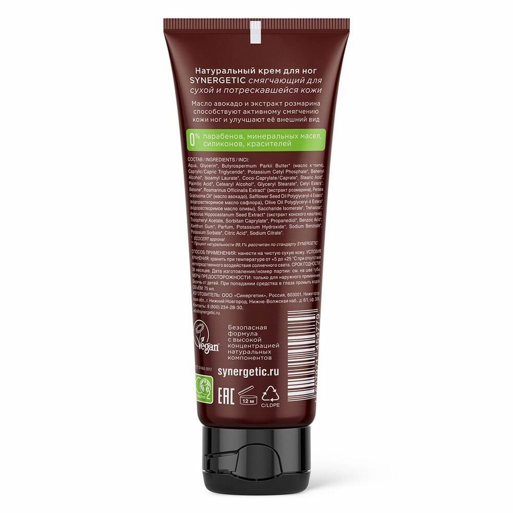 Крем для ног Synergetic Натуральный, смягчающий, для сухой и потрескавшейся кожи, 75 мл (4607971454779) информация: