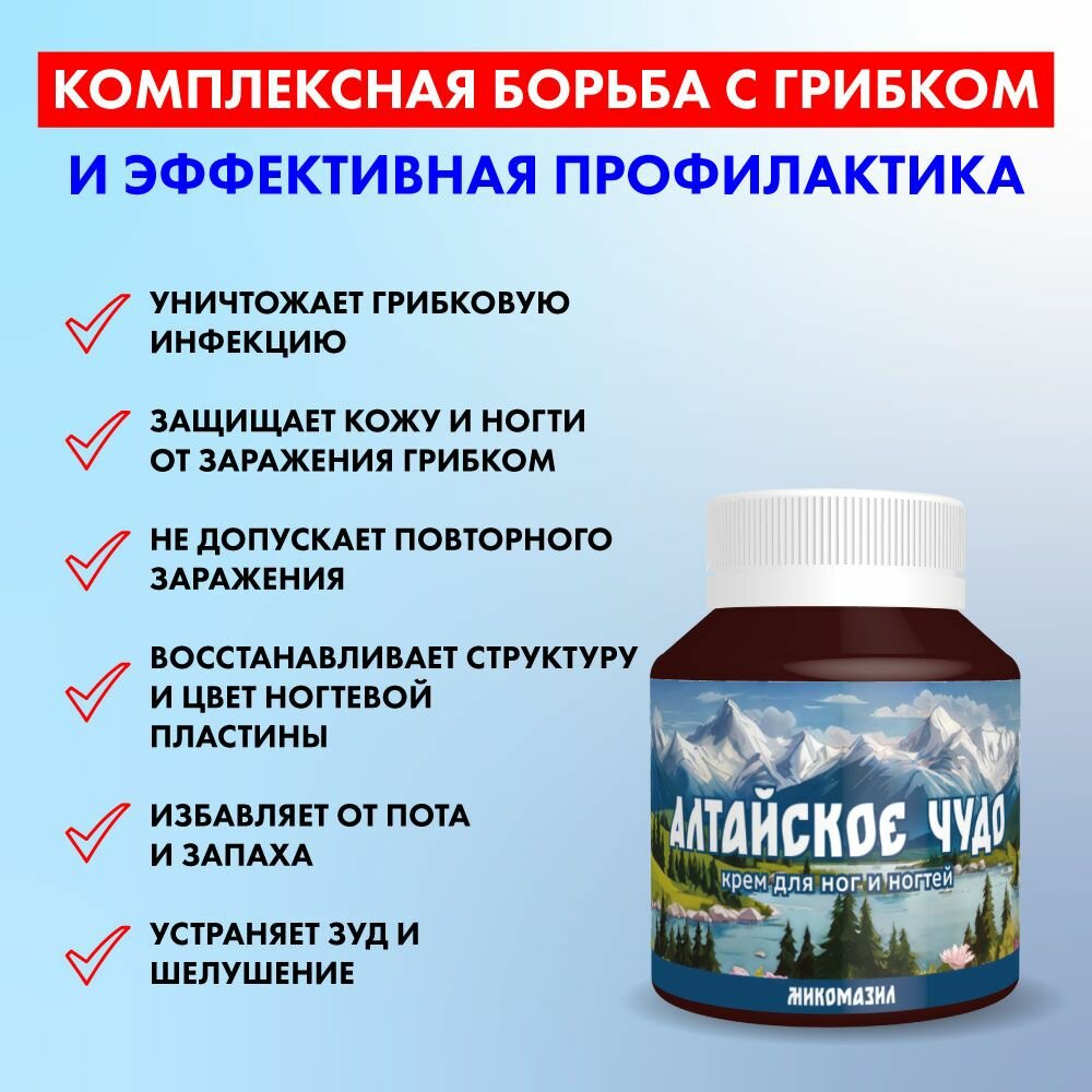 Алтайское чудо крем для ног и ногтей "Микомазил" от микоза ногтей от грибка кожи от пота и запаха. ЛУЧИКС информация: