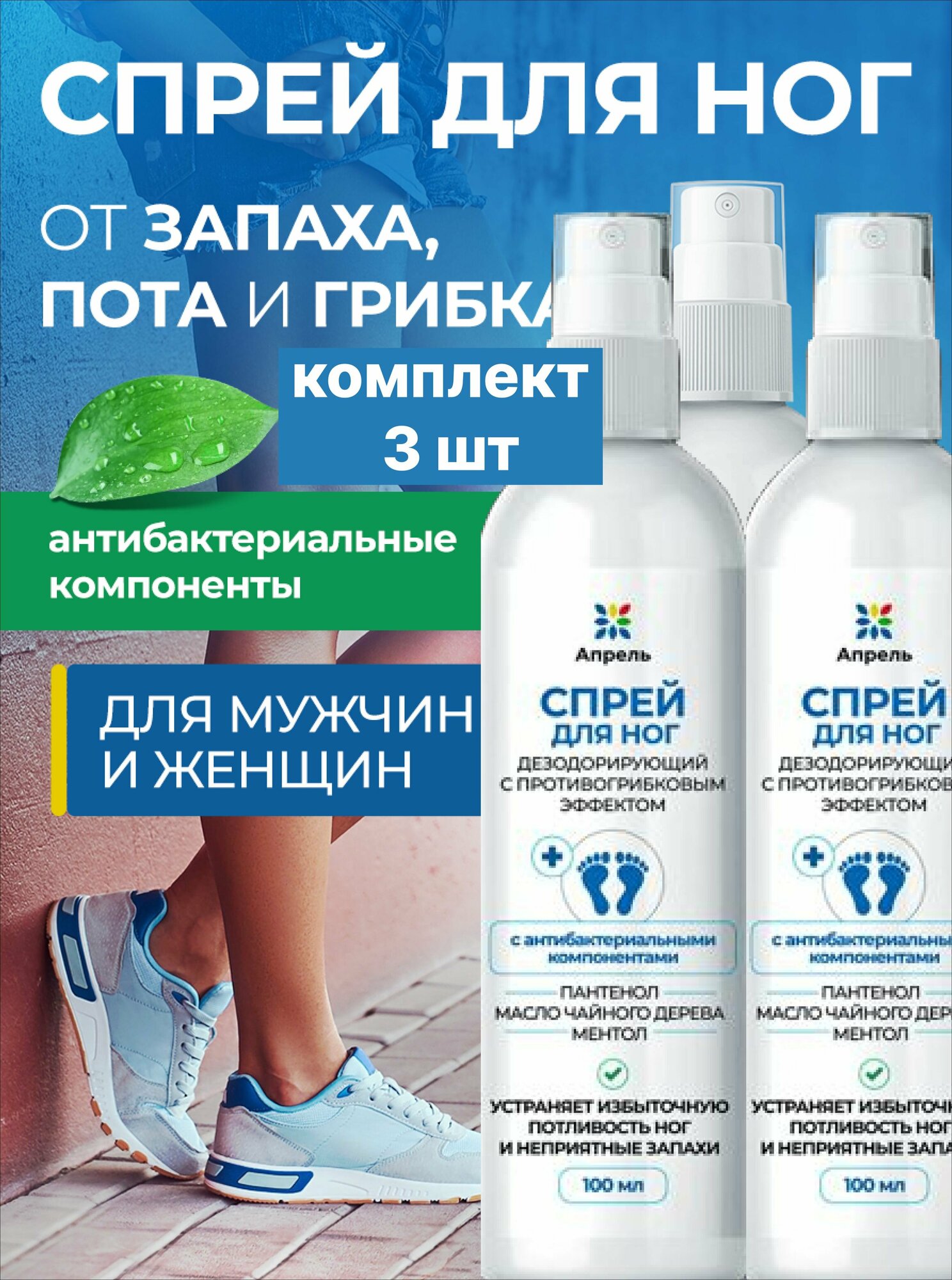 10 цен на Спрей защитный для ног Апрель, с антибактериальным действием, 100 мл, 3 шт