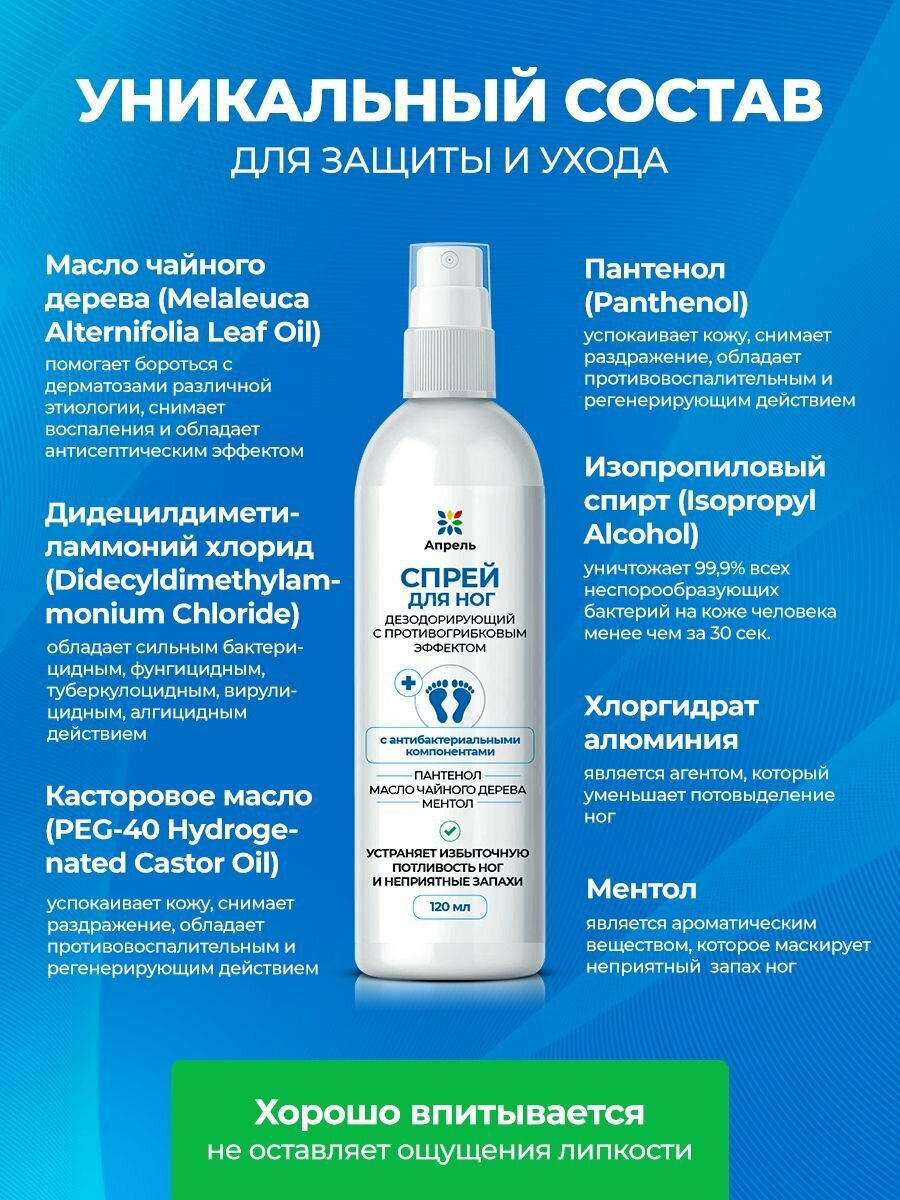 Спрей защитный для ног Апрель, с антибактериальным действием, 100 мл, 3 шт информация:
