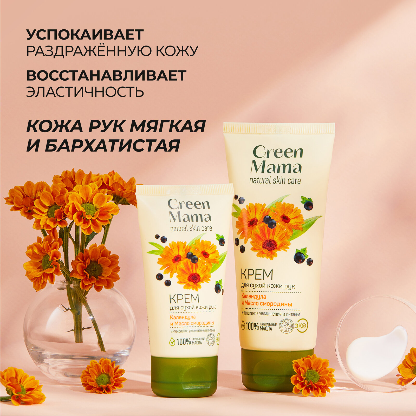 Крем для сухой кожи рук GREEN MAMA календула и масло смородины 100 мл - 2 шт информация: