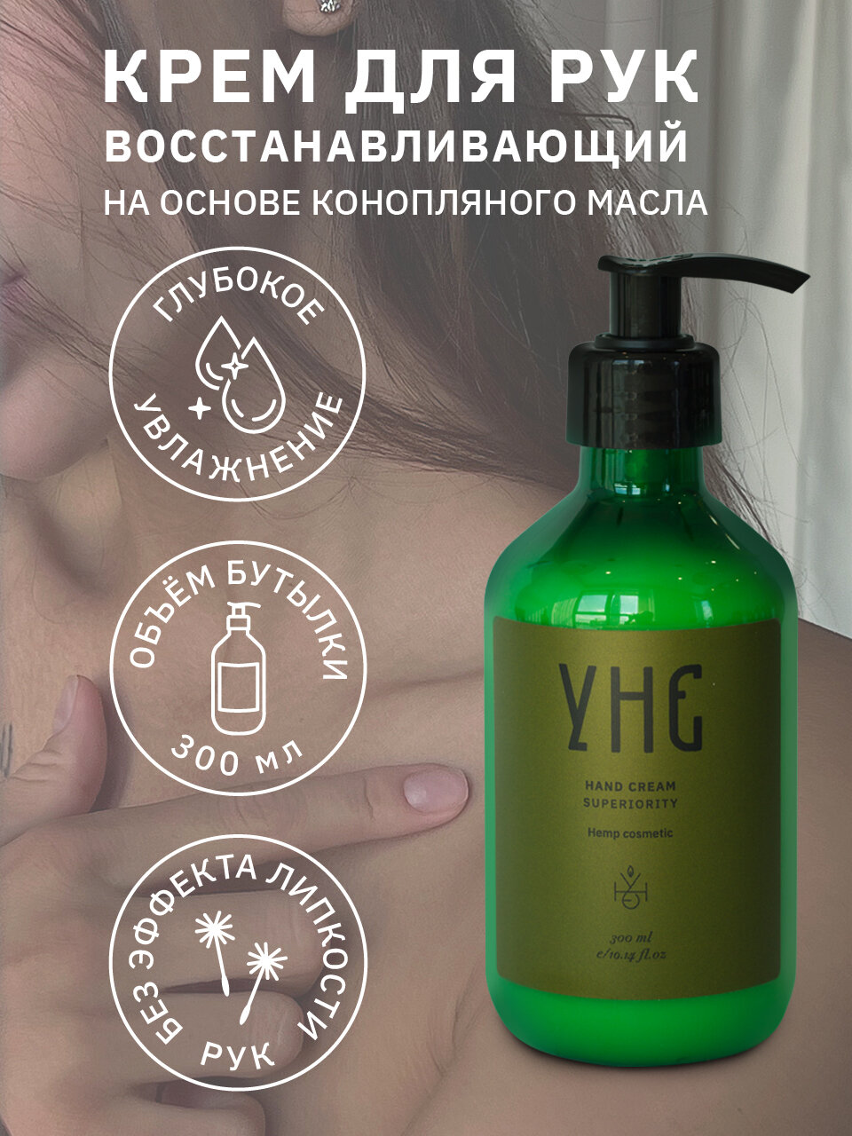 10 цен на Крем для рук с дозатором, восстанавливающий, увлажняющий, УНЕ, на основе конопляного масла SUPERIORITY , 300 мл
