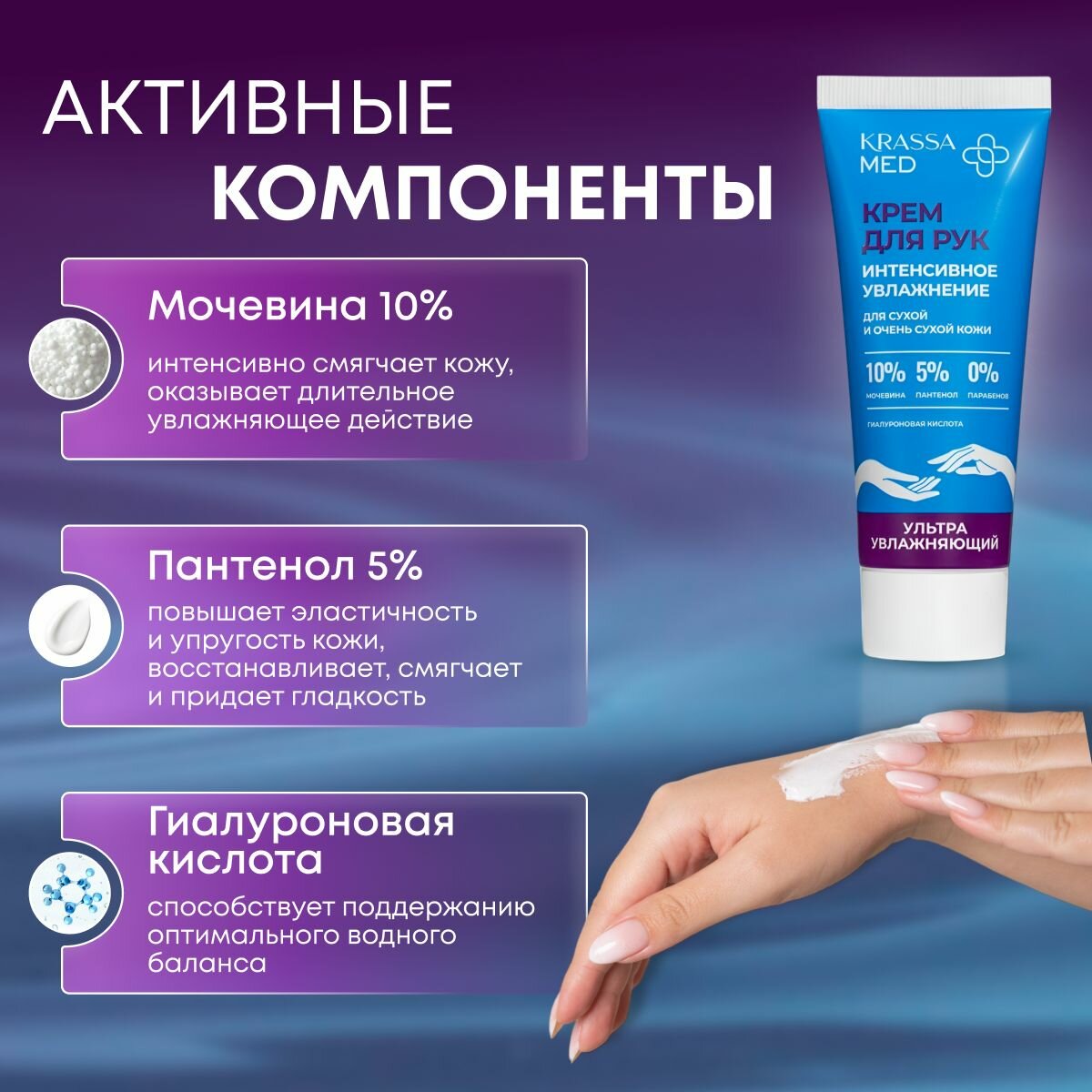 Отзывы на Крем для рук увлажняющий. KRASSA MED 10% Мочевины, 5% Пантенол, 0% силиконов.