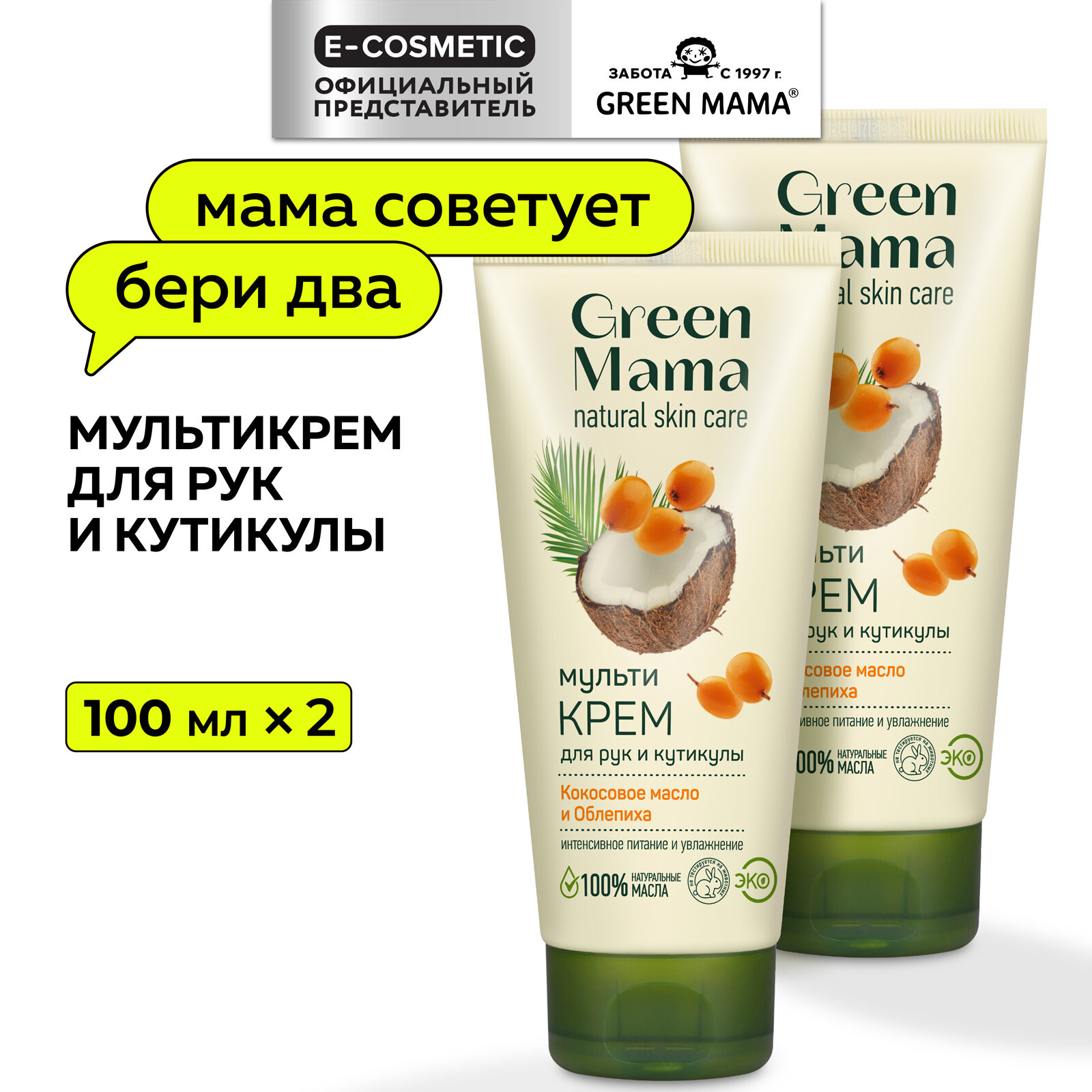Крем для рук и кутикулы GREEN MAMA "Мультикрем" 100 мл - 2 шт информация: