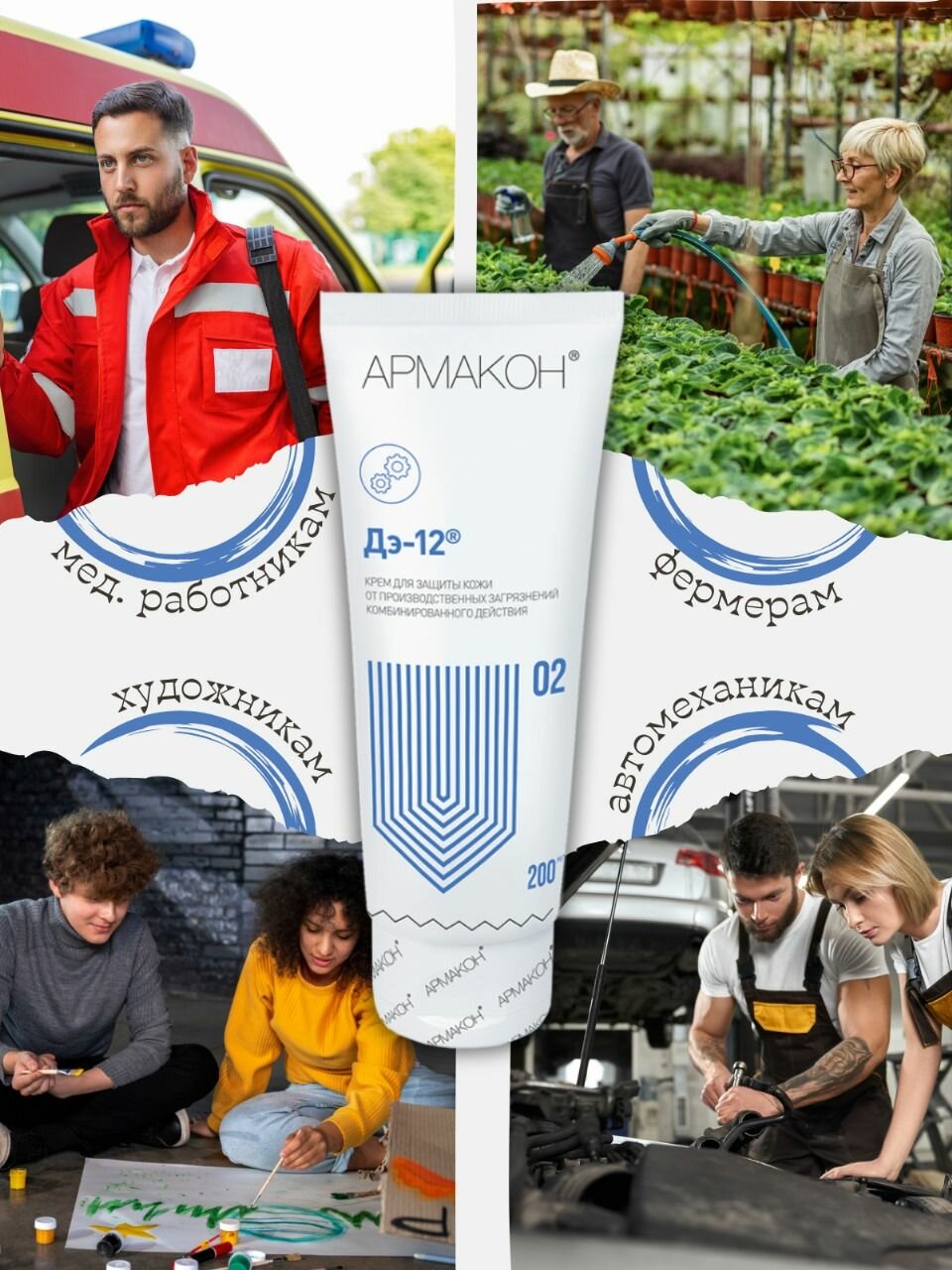 Защитный крем Армакон ДЭ-12, разработан для профессионалов универсальный, 200 мл, 2 шт информация: