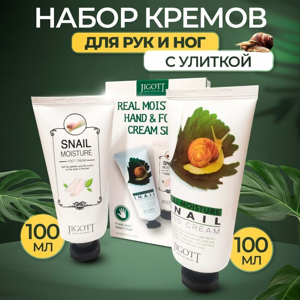 Набор кремов для рук и ног с улиткой Jigott Real Moisture Hand and Foot Cream Set информация: