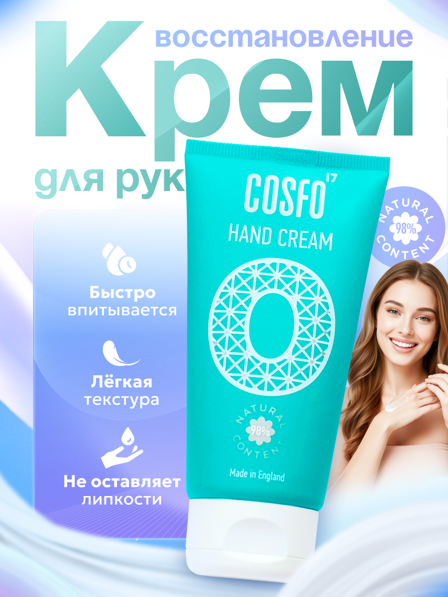 10 цен на Крем COSFO для рук, натуральный, с маслом ши, овса, витамином E и пантенолом, 75мл