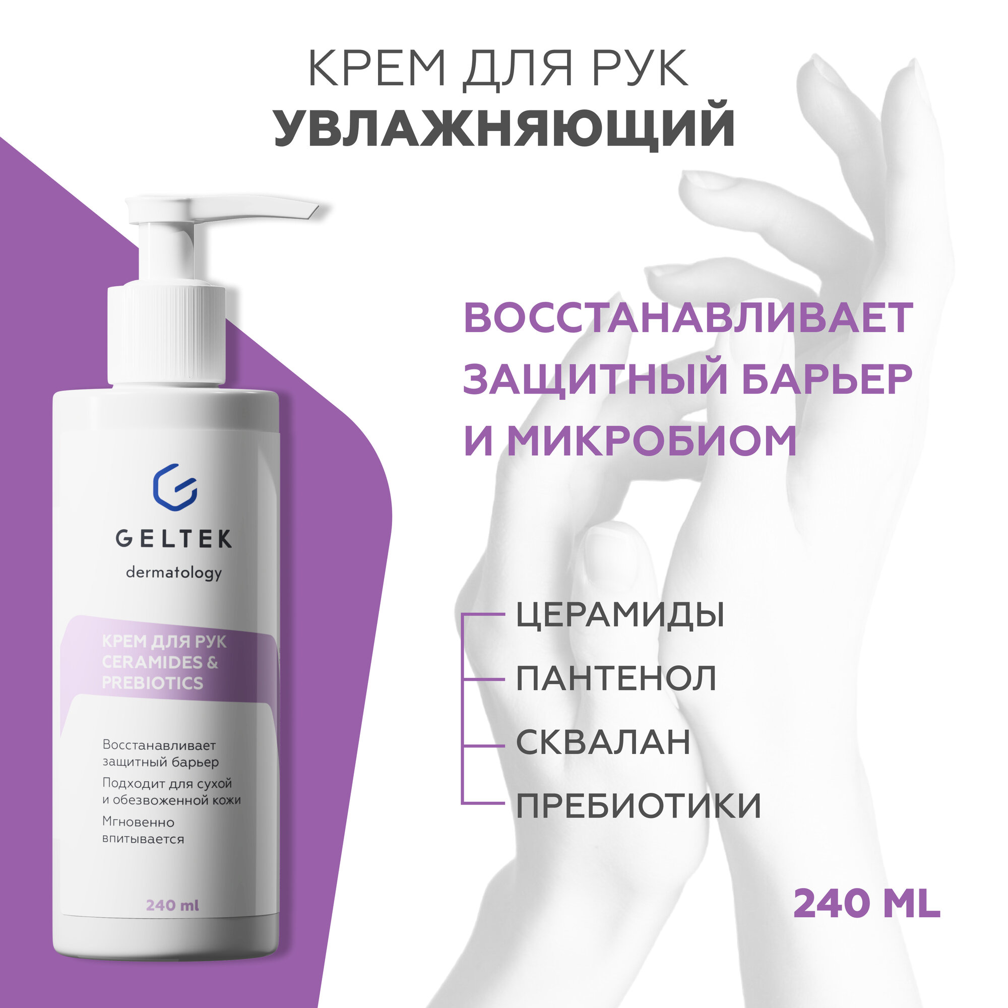10 цен на Гельтек Крем для рук питательный Ceramides&Prebiotics, с маслом ши и миндаля, 240 мл