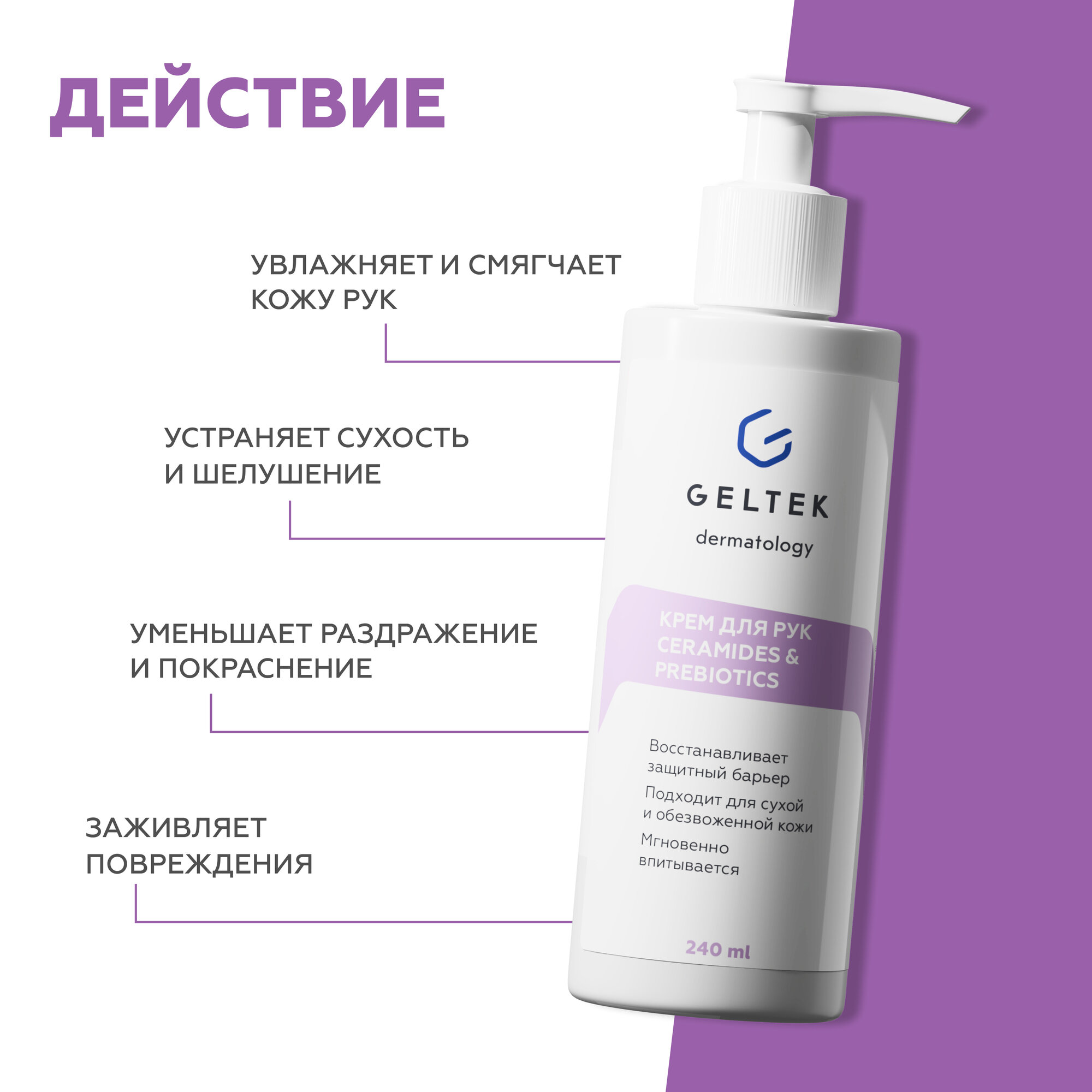 Гельтек Крем для рук питательный Ceramides&Prebiotics, с маслом ши и миндаля, 240 мл информация: