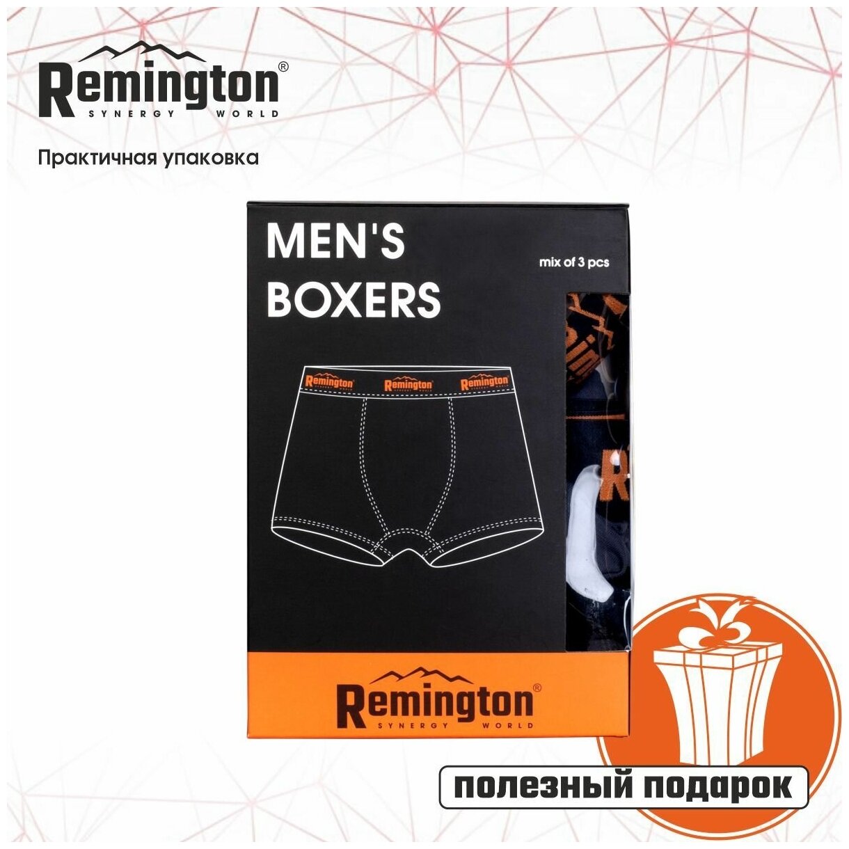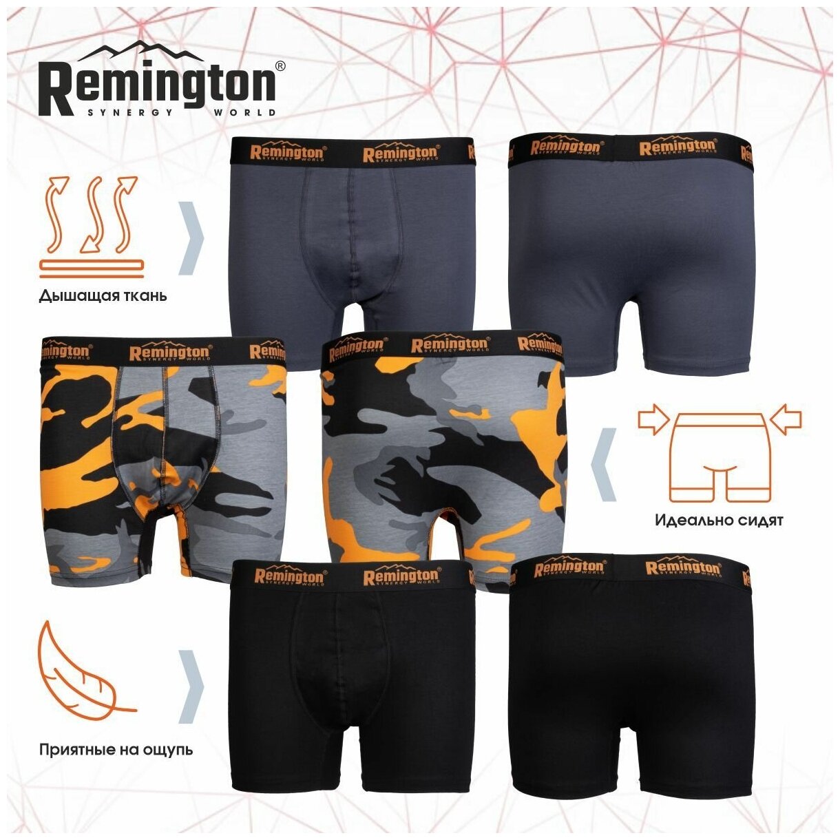 Трусы Remington, комплект из 3 шт., размер S, серый/оранжевый