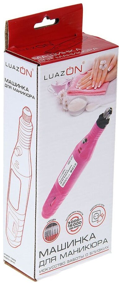 Luazon Home Аппарат для маникюра Luazon LMH-01, 6 насадок, 5 Вт, 3000-15000 об/мин, розовый