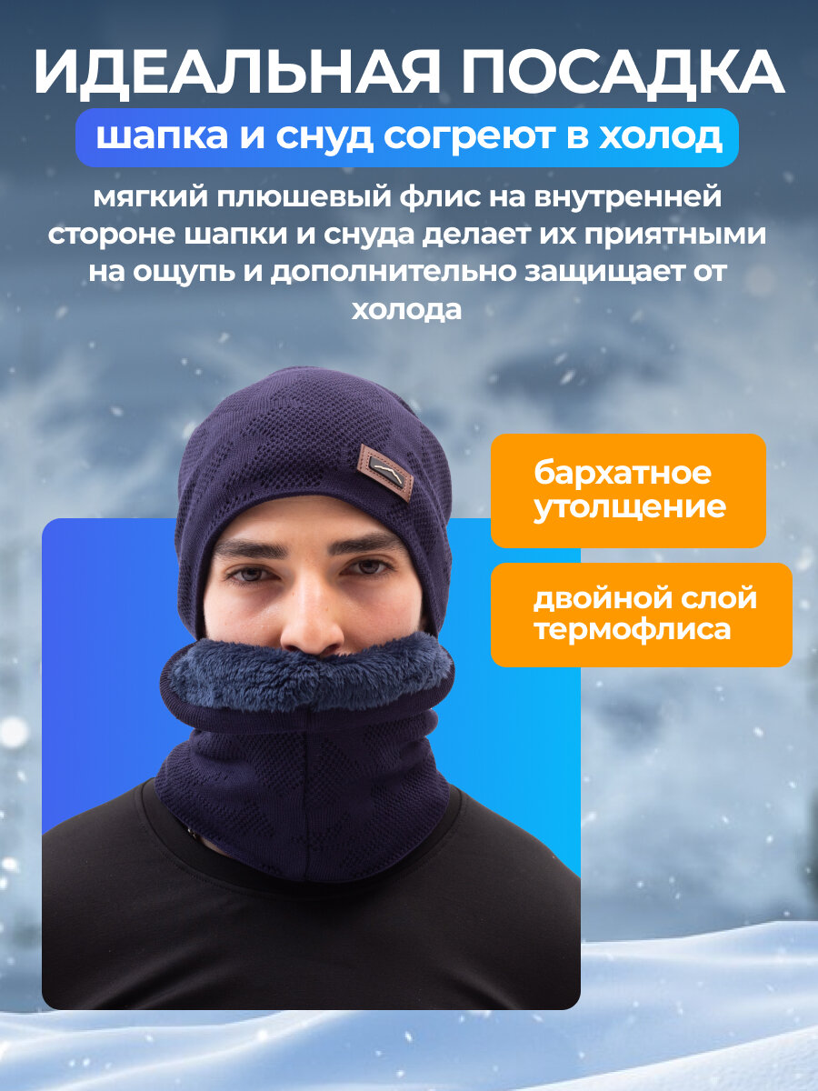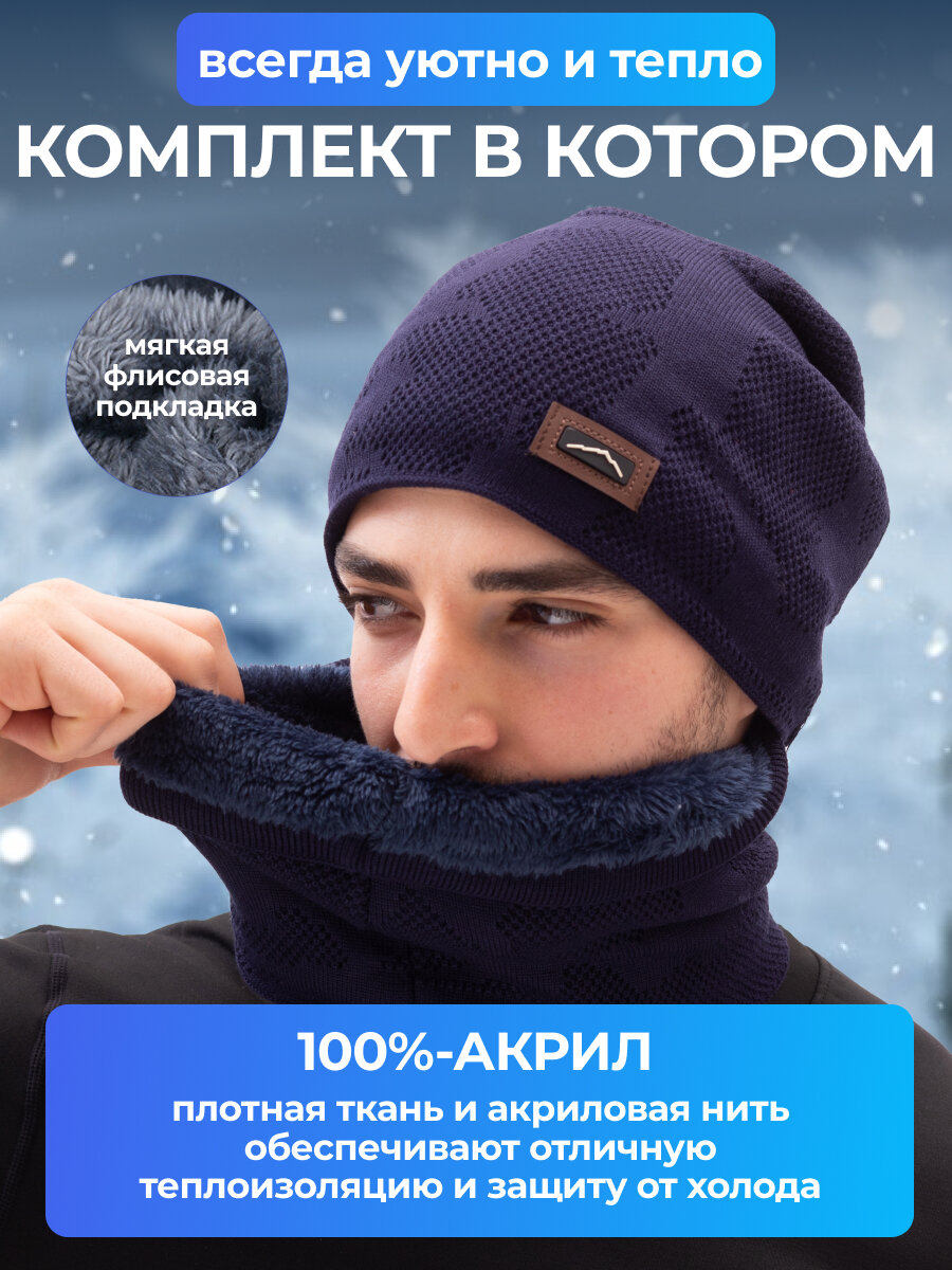 Комплект вязаный для мальчика: шапка, снуд PlayToday 32112265 тёмно-синий 52