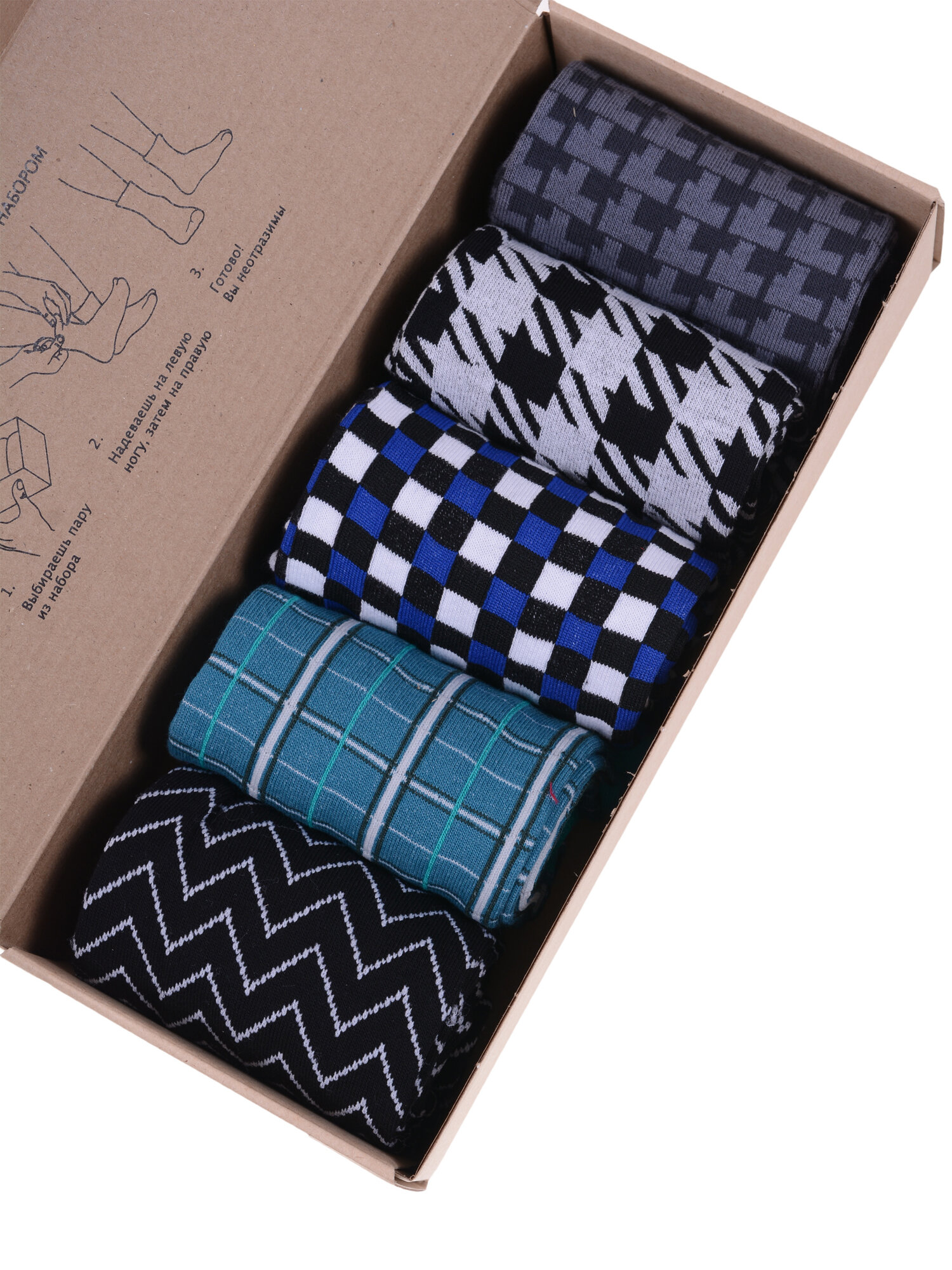 10 цен на Носки MSCLUB, комплект, 5 пар, размер 27 (41-43), голубой, белый, серый, черный