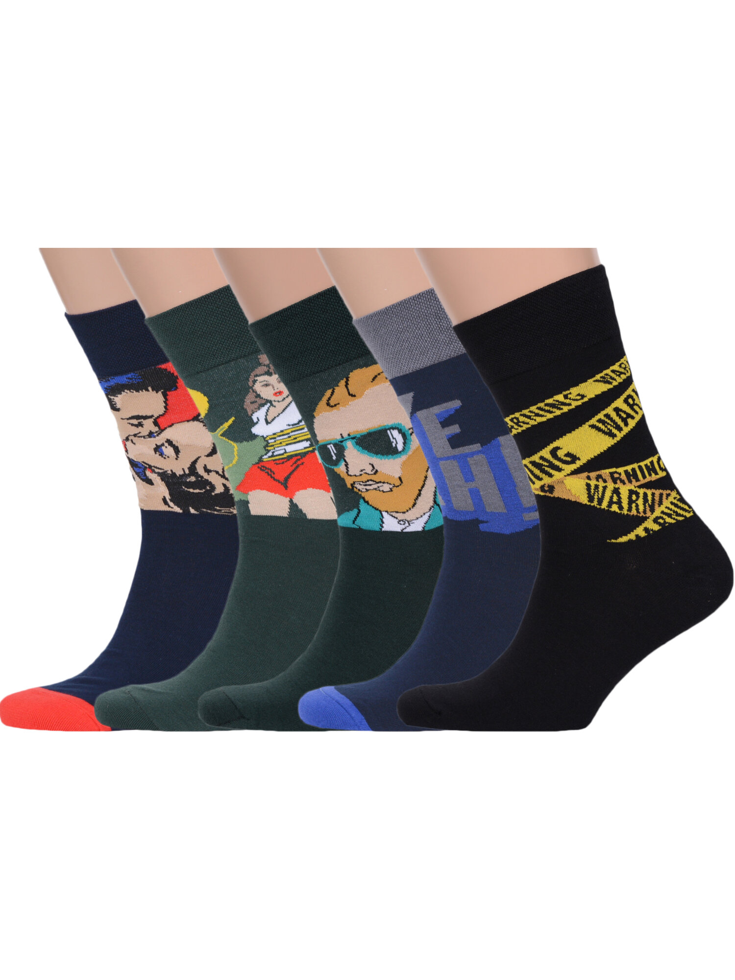Носки MSCLUB, комплект, 5 пар, размер 25 (38-40), зеленый, синий, бежевый, черный 1 833 ₽