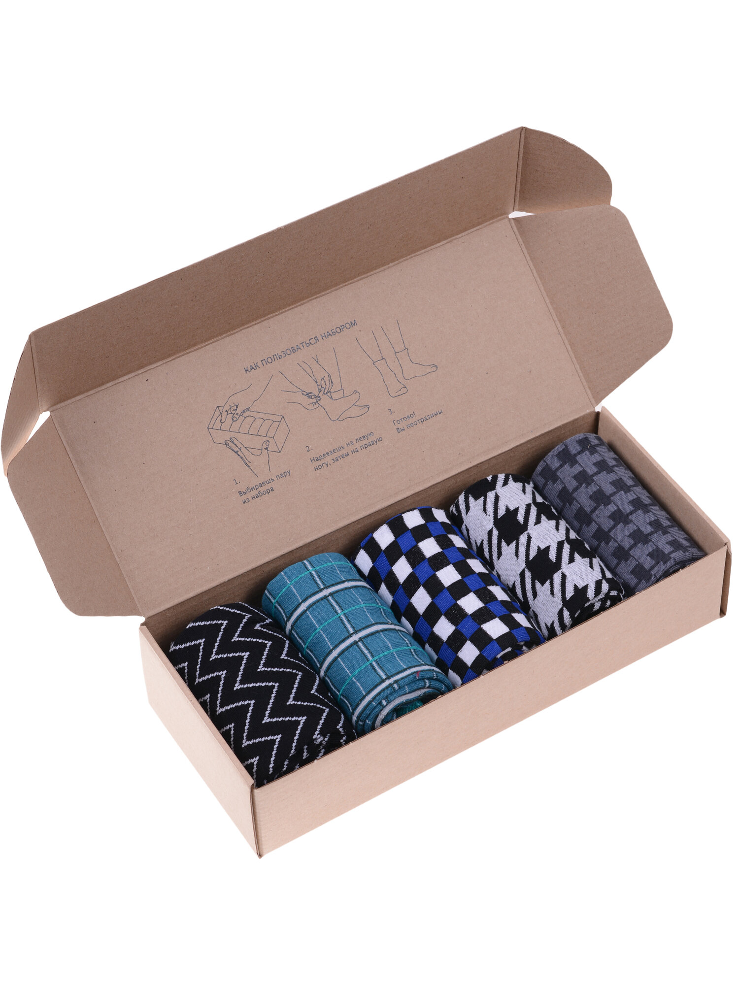 Носки MSCLUB, комплект, 5 пар, размер 27 (41-43), голубой, зеленый, синий, коричневый 1 607 ₽