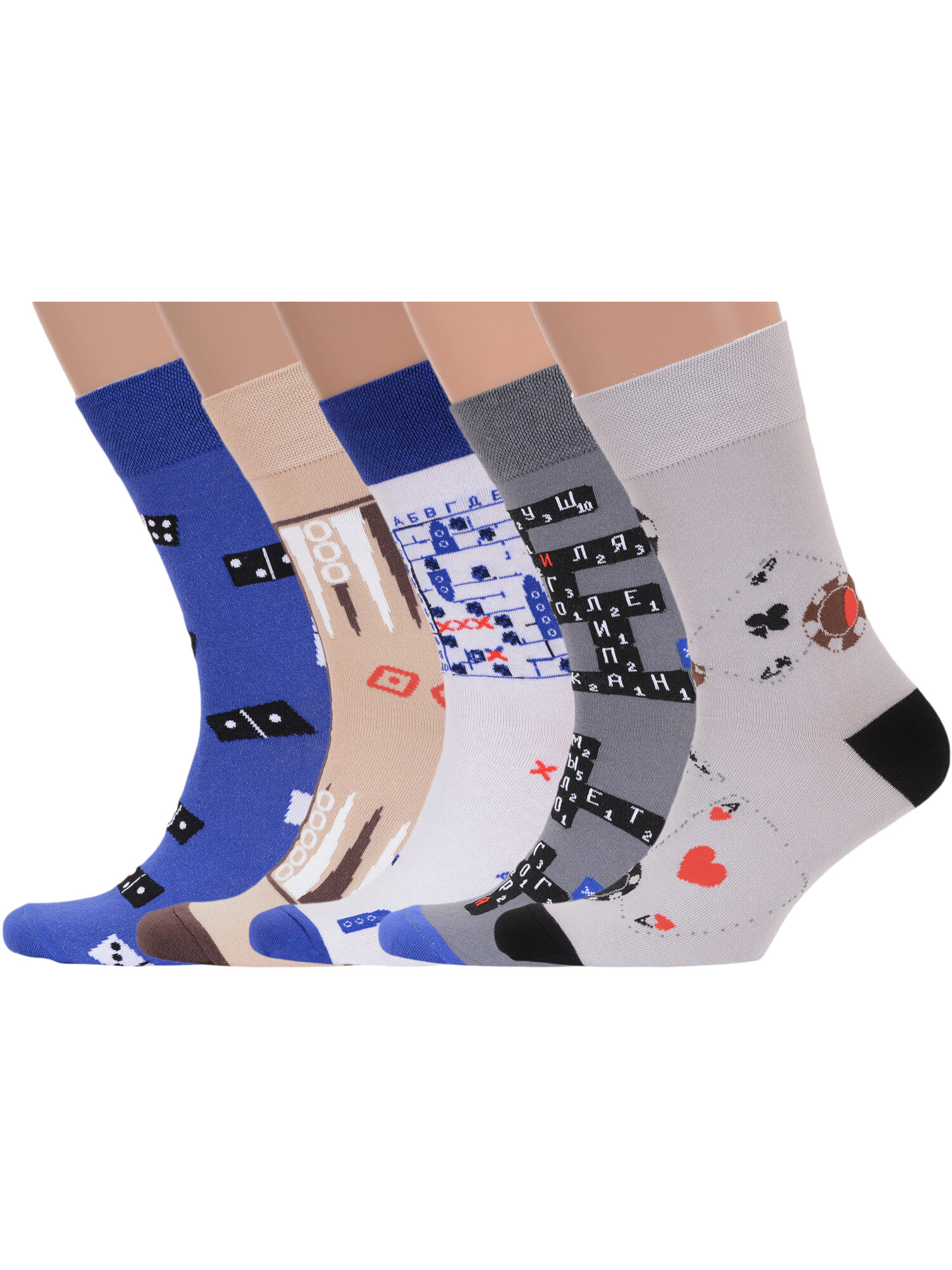 Носки MSCLUB, комплект, 5 пар, размер 29 (44-46), синий, белый, серый, бежевый информация: