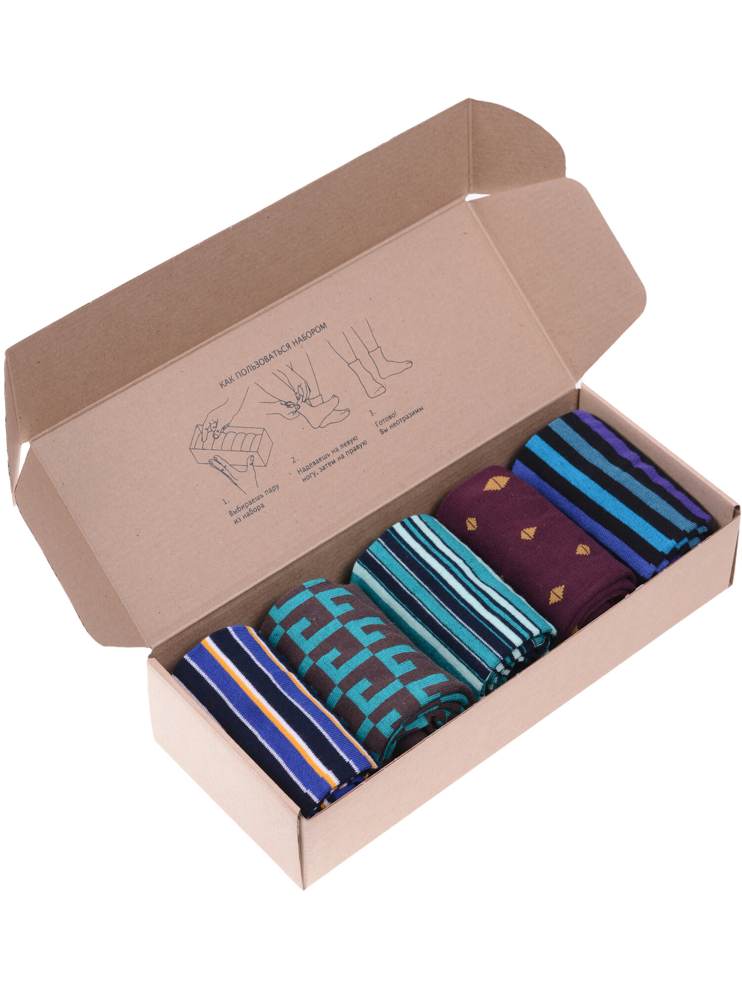 10 цен на Носки MSCLUB, комплект, 5 пар, размер 27 (41-43), бирюзовый, синий, коричневый