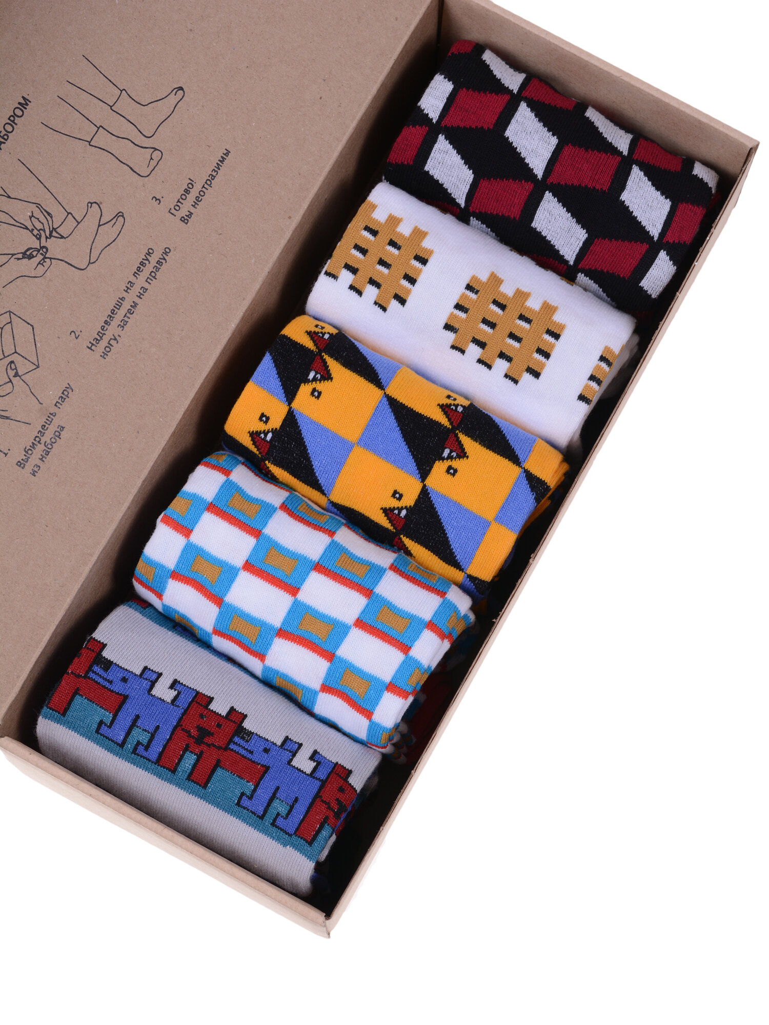Носки MSCLUB, комплект, 5 пар, размер 27 (41-43), синий, белый, серый, бежевый 1 677 ₽