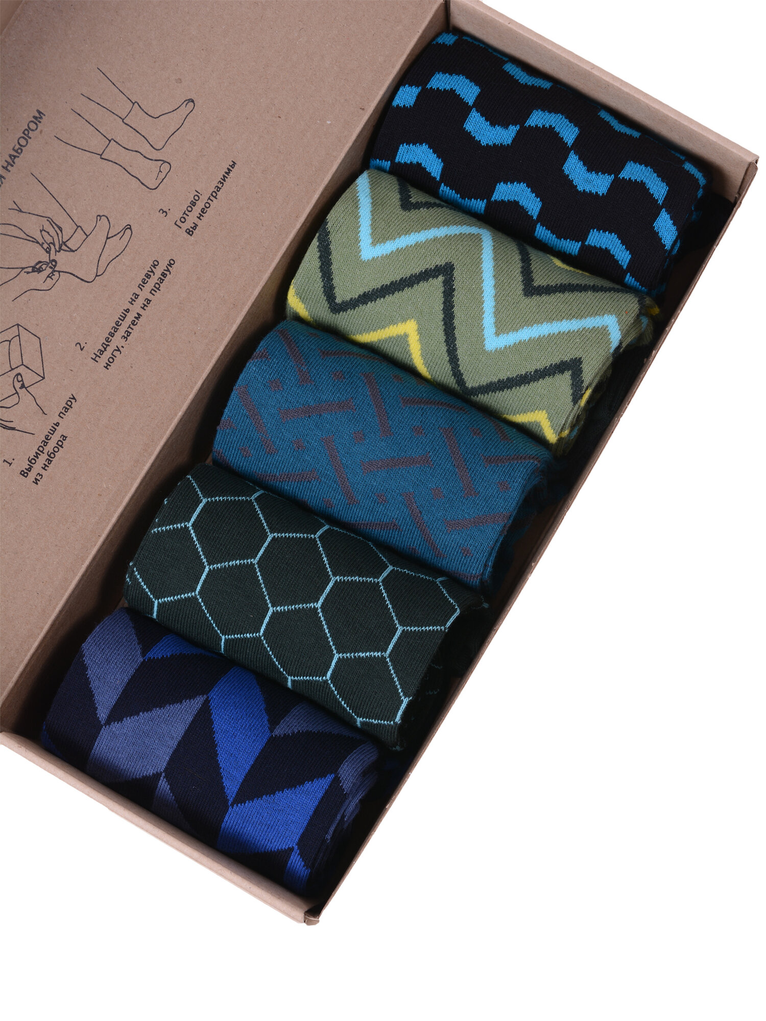 Носки MSCLUB, комплект, 5 пар, размер 29 (44-46), голубой, зеленый, синий, коричневый 1 607 ₽