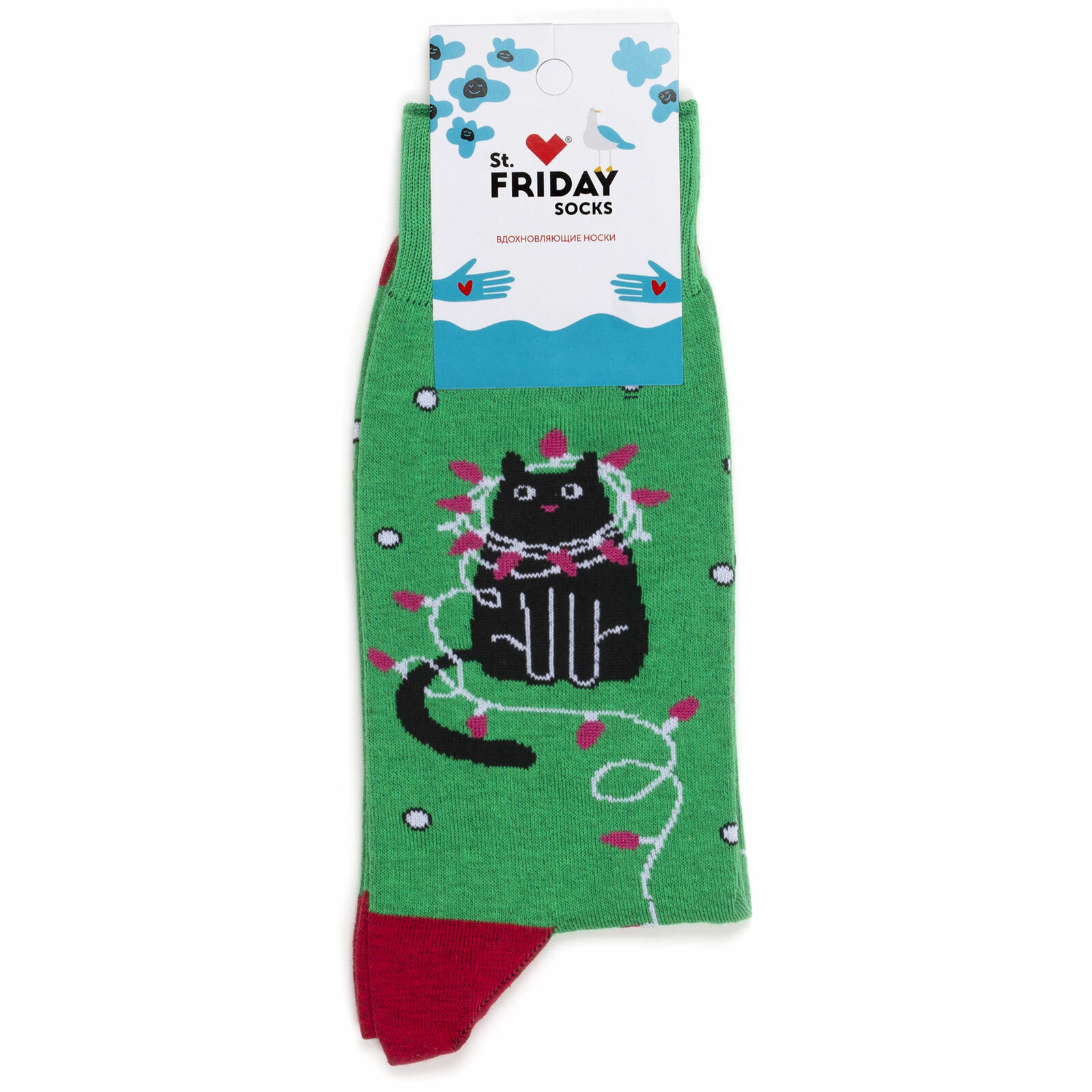 Носки St. Friday Новогодние носки - Гирлянда кота, размер 42-46, красный, черный, зеленый 590 ₽