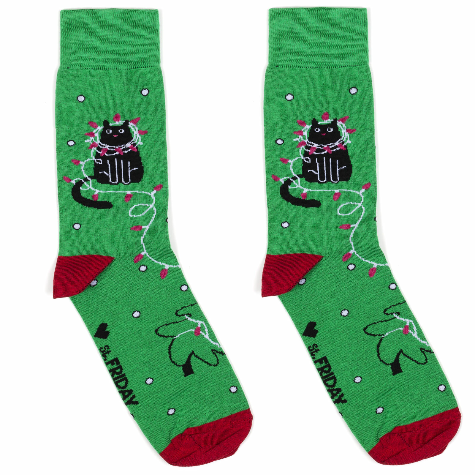Носки St. Friday Новогодние носки - Гирлянда кота, размер 42-46, красный, черный, зеленый 590 ₽