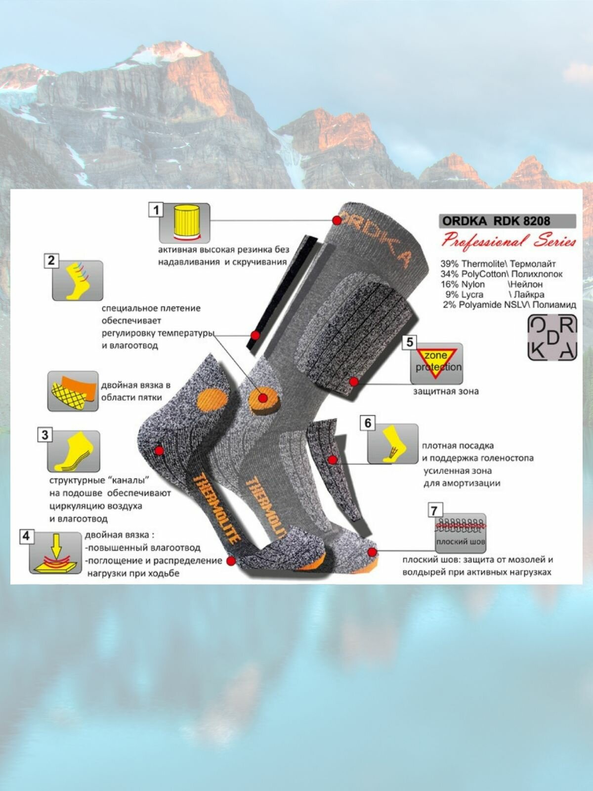 Термоноски ORDKA, размер 39-42, серый, черный, оранжевый информация: