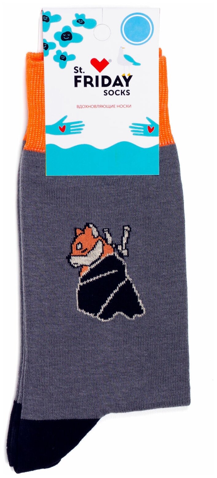 Носки St. Friday НоскиБулочный самурай, размер 42-46, черный, серый