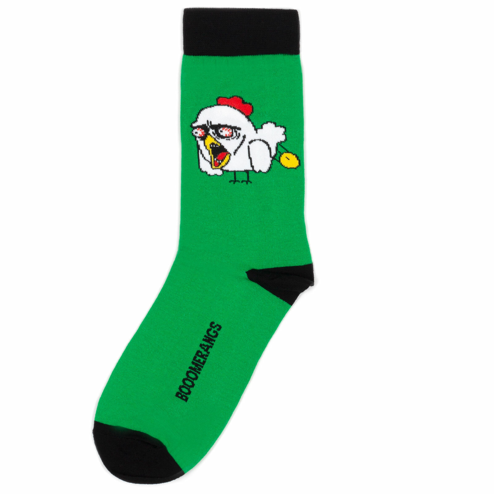 Носки BOOOMERANGS носки с рисунками - "Курица с яйцом", размер 40-45, белый, зеленый, желтый информация:
