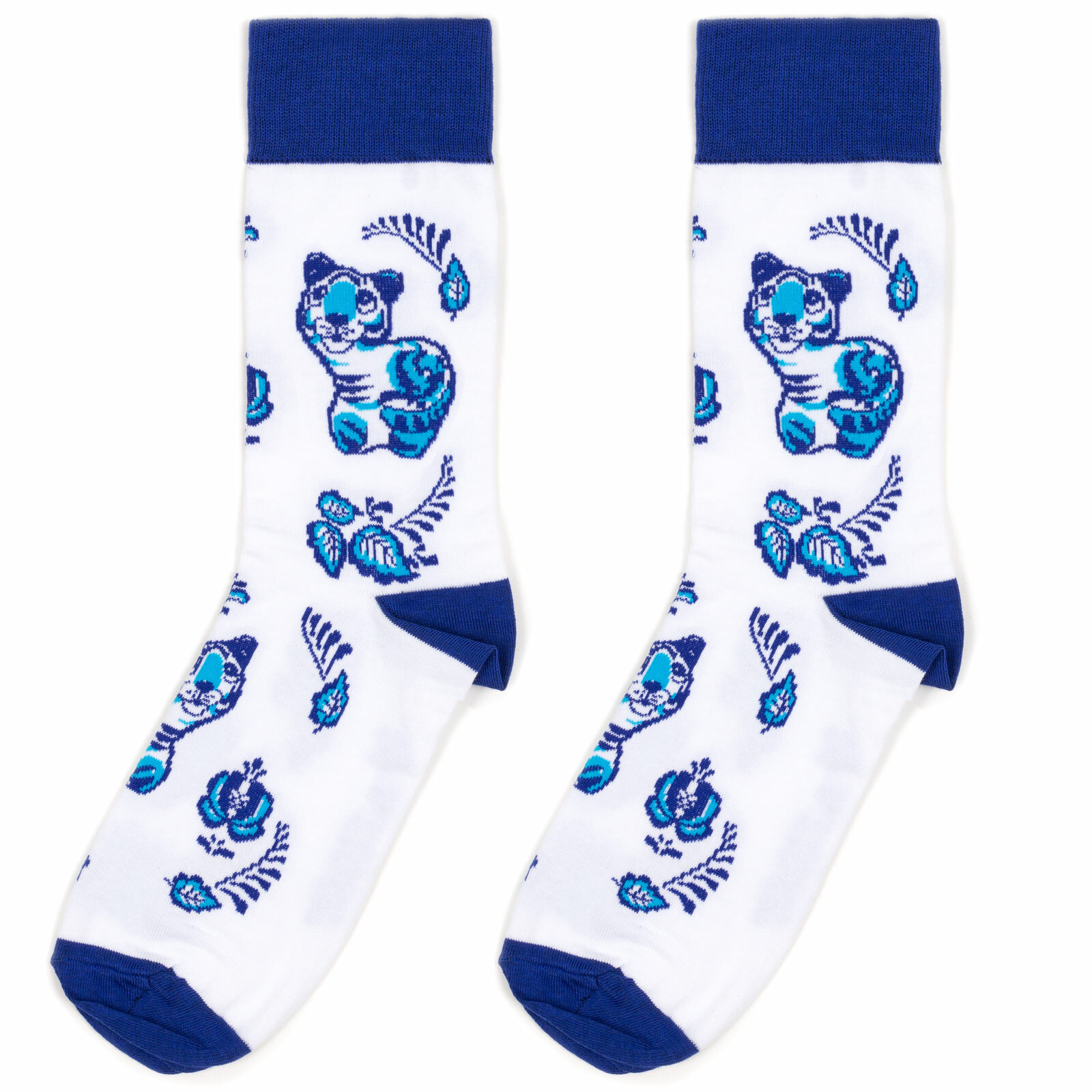 10 цен на Носки St. Friday - Гжельский тигр, размер 42-46, голубой, синий, белый