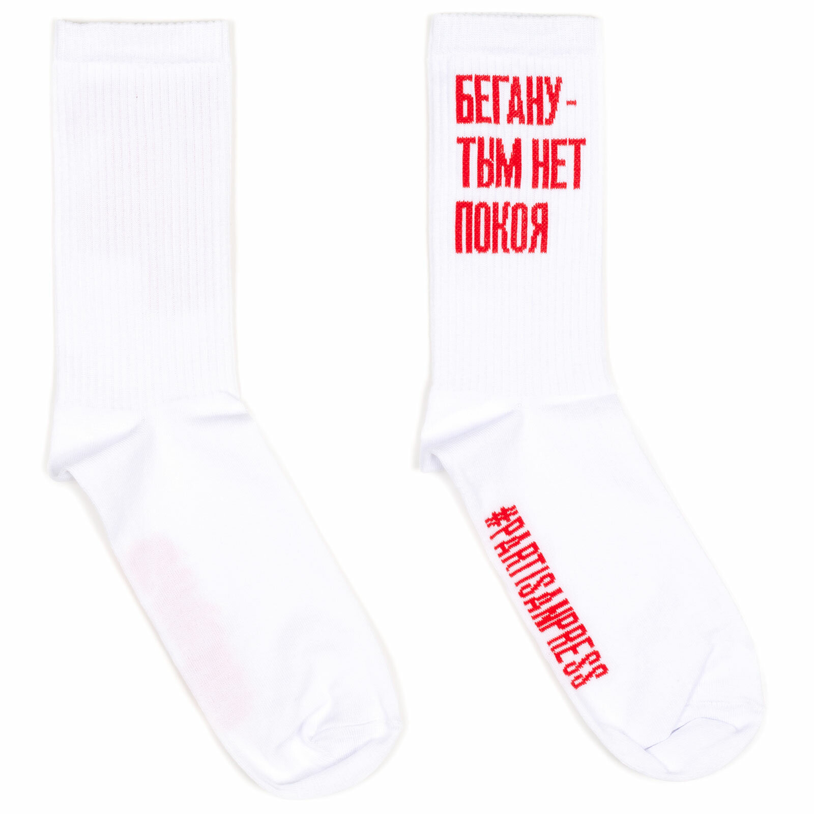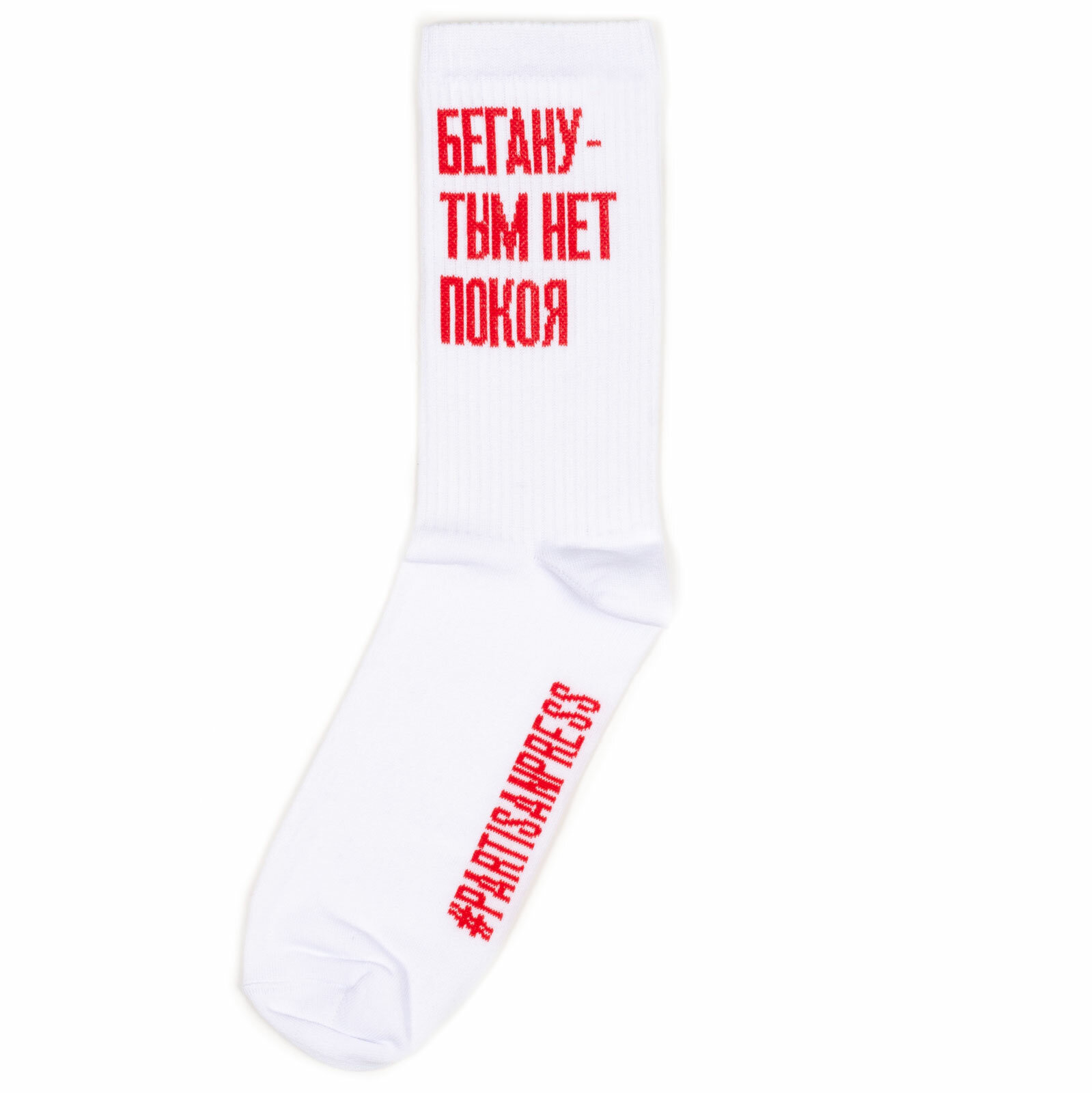 Носки #PARTISANPRESS Носки с надписями Беганутым нет покоя, размер 41-44, белый информация: