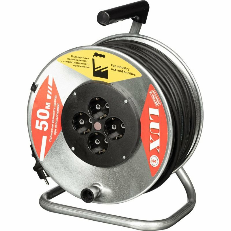 Удлинитель силовой LUX К4-Е-50 (45150) 3x2.5кв.мм 4розет. 50м КГ 16A метал.катушка