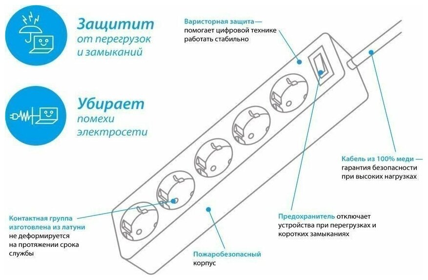 Сетевой фильтр космос У-5m-5g-Z-V 5 розеток 5 м (белый)