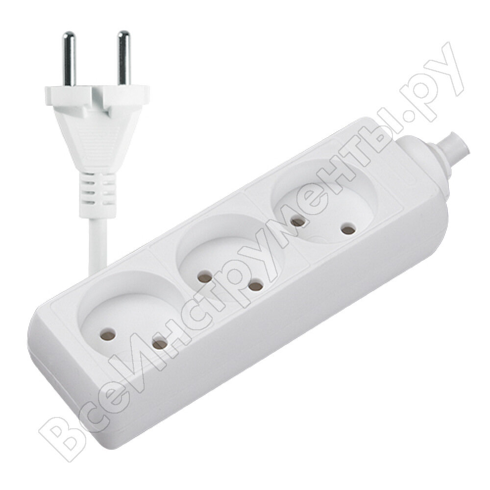 MAKEL Удлинитель бытовой Makel (N3010041) прямая без заземления 3 м 10 А 250 В ПВС 2х0,75 мм2 3 розетки 2,2 кВт IP20 белый