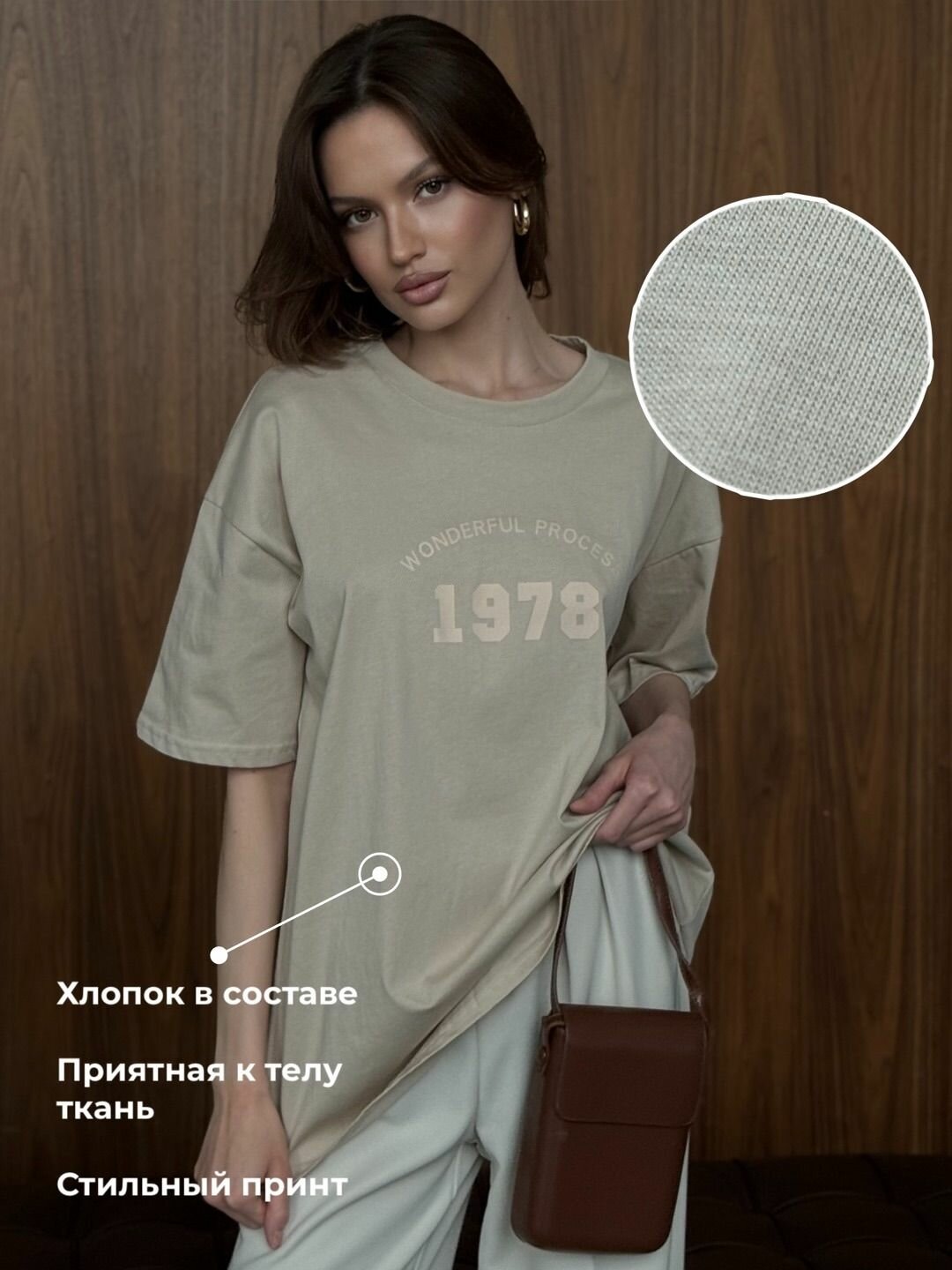 10 цен на Футболка EMBERENS Весна-лето 2025, размер 40-48, бежевый