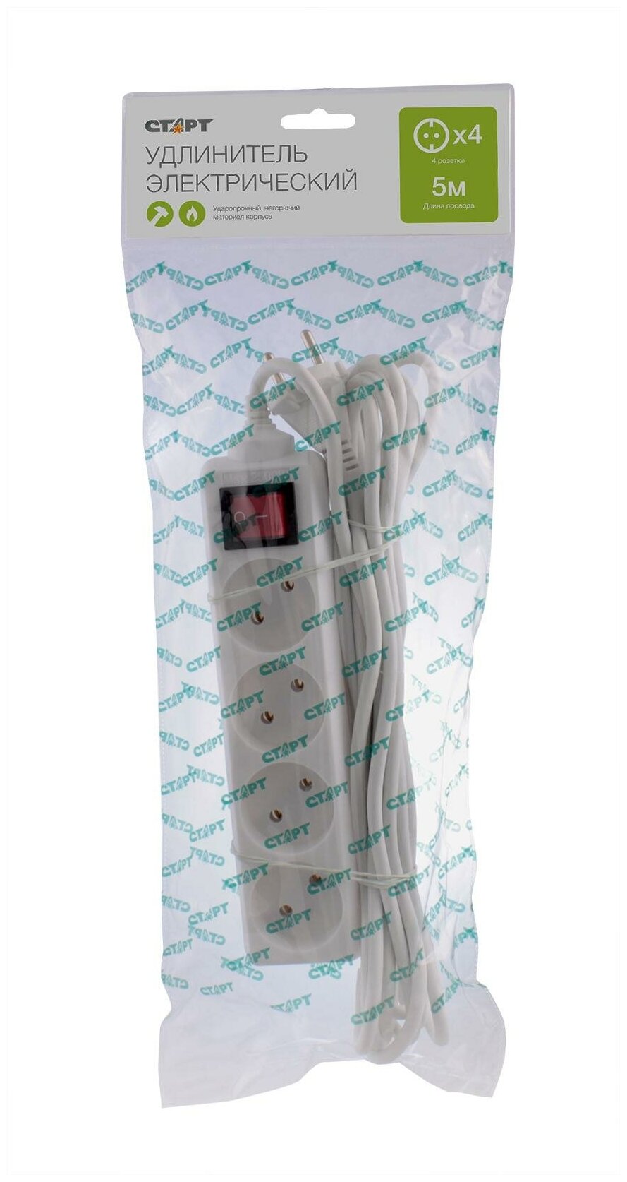 Удлинитель сетевой старт, S 4x5 -V, с выключателем, колодка 4 розетки, шнур 5 м информация: