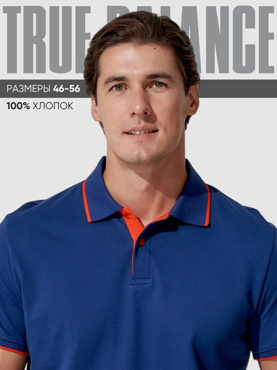 Поло TRUE BALANCE Весна-лето 2025, размер 52, голубой/темно-синий 1 440 ₽