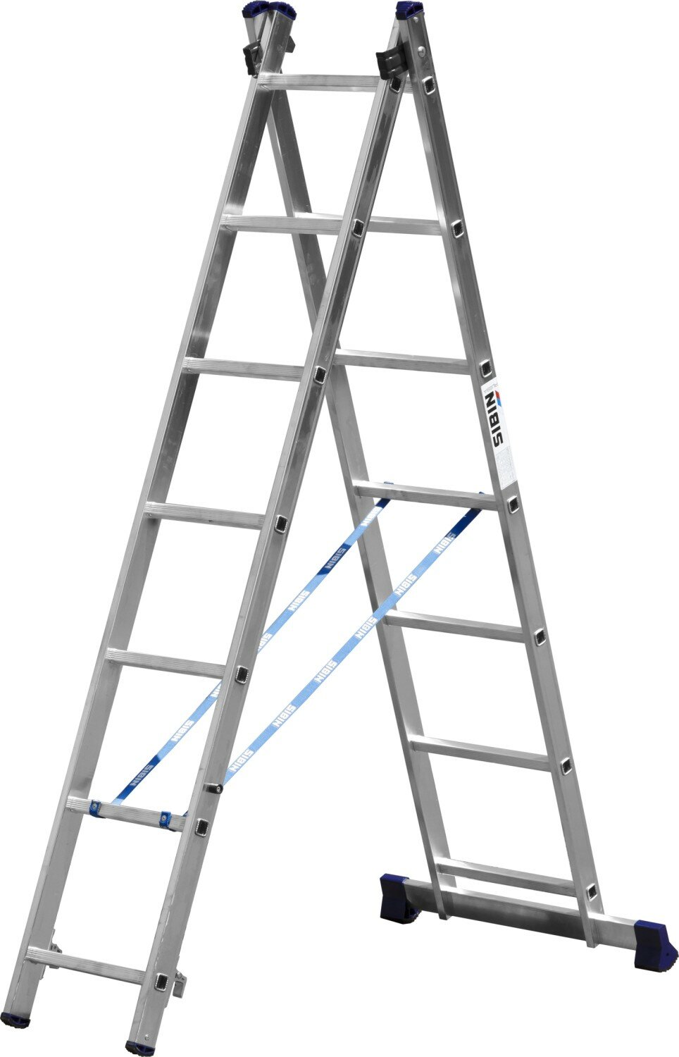 СИБИН 7 ступеней, со стабилизатором, алюминиевая, двухсекционная лестница (38823-07)