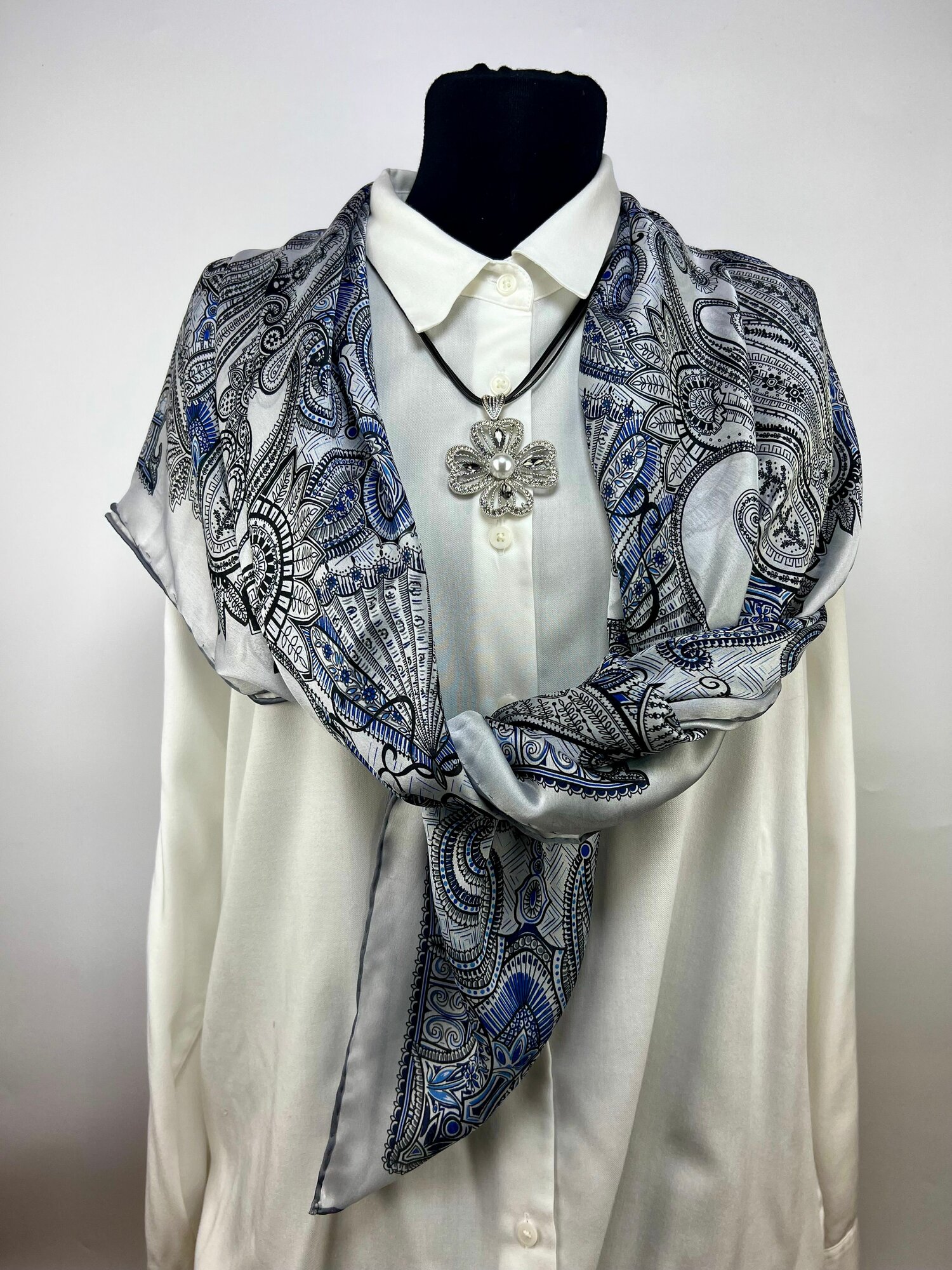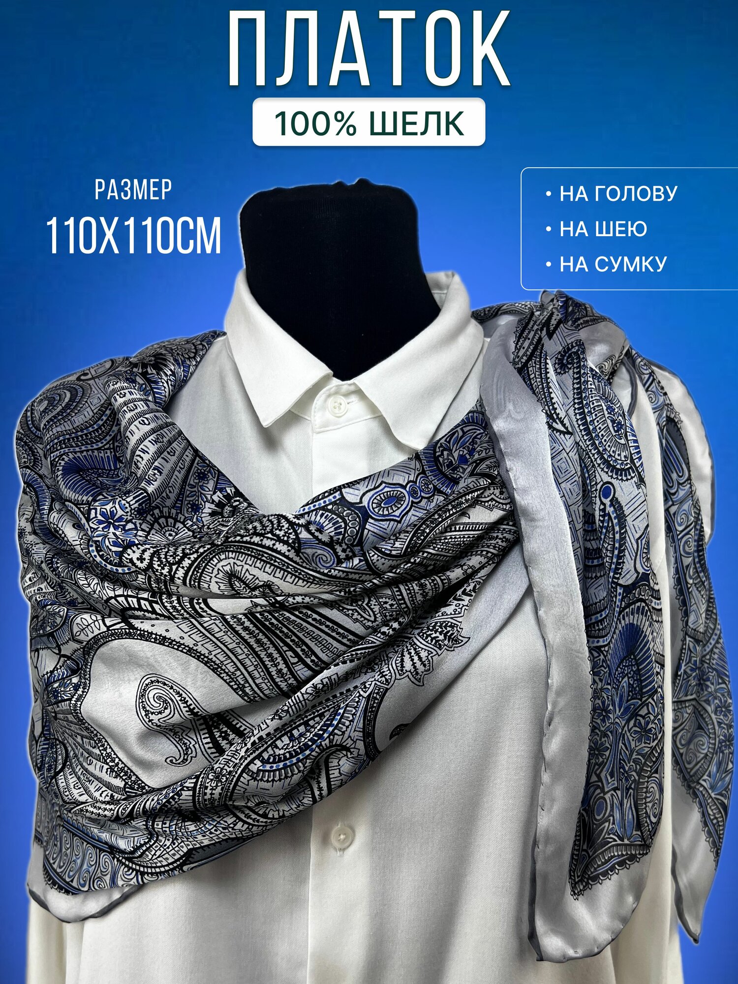 Отзывы на Платок Итальянские традиции для женщин,110х110 см, серый, синий