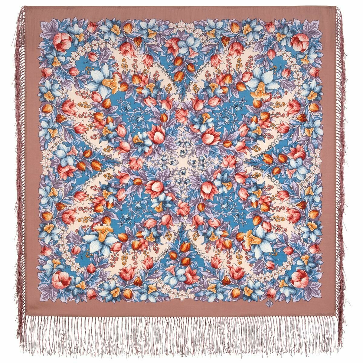 Отзывы на Платок Павловопосадская платочная мануфактура для женщин,89х89 см, бежевый, розовый