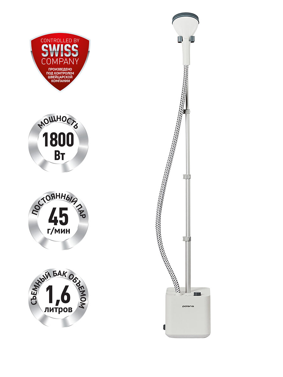 POLARIS 1082977 1082977_Отпариватель вертикальный Polaris PGS 1820VA, 1,6 л, 1800 Вт,45 г/мин,белый 1шт