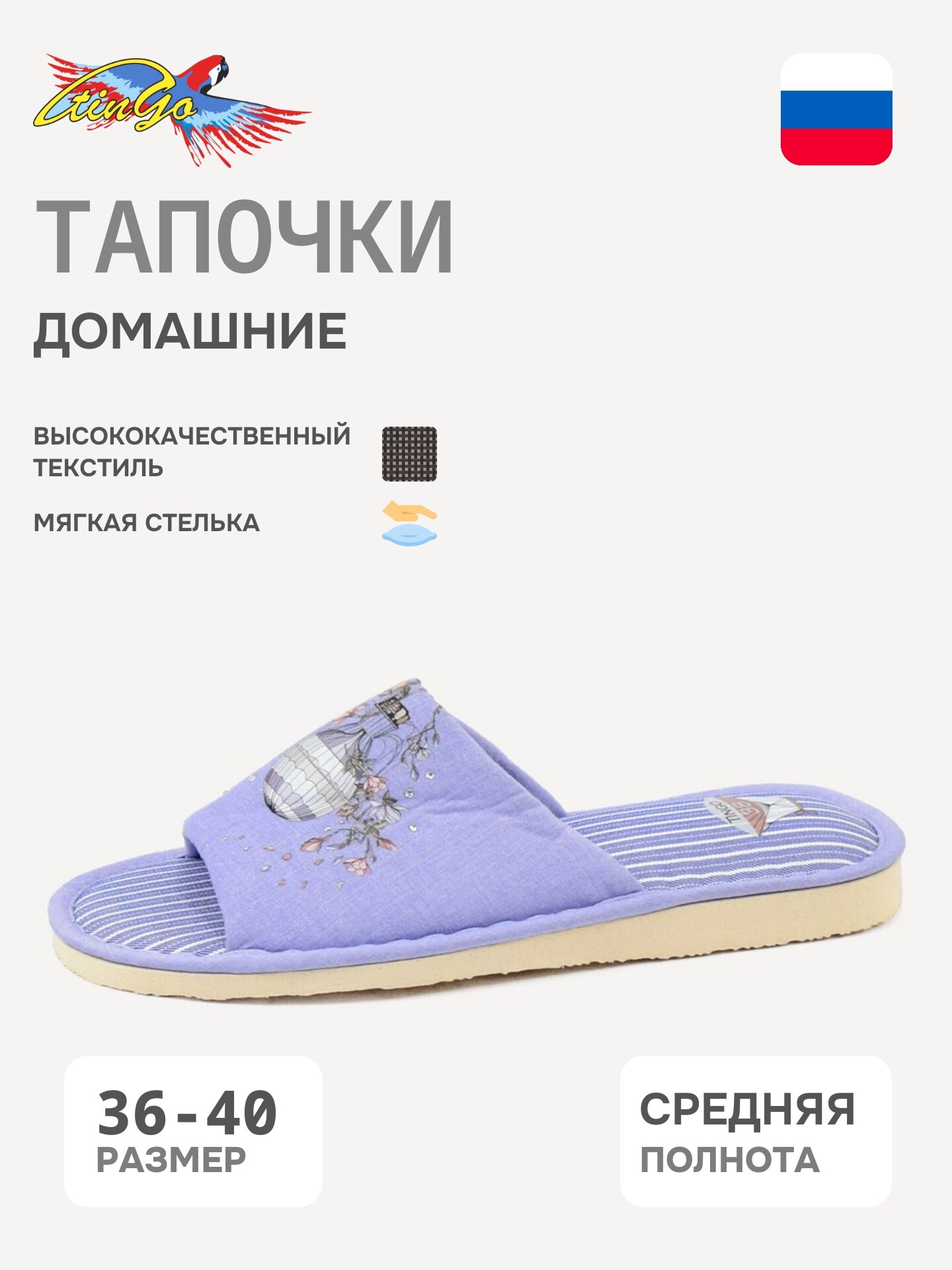 Тапочки Tingo, размер 39, сиреневый информация: