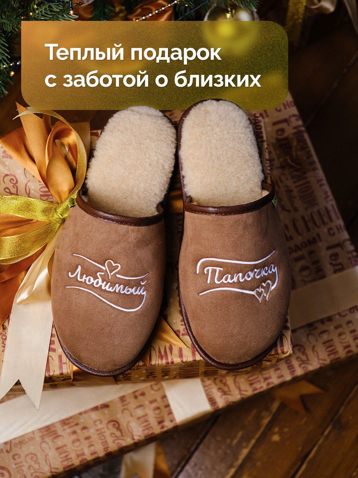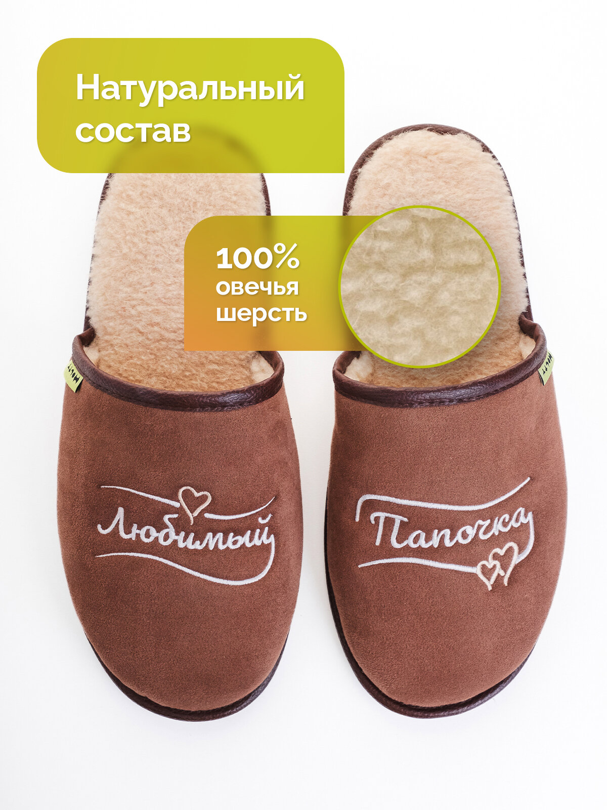 Тапочки HOLTY Подарок любимым, размер 42, коричневый 1 874 ₽