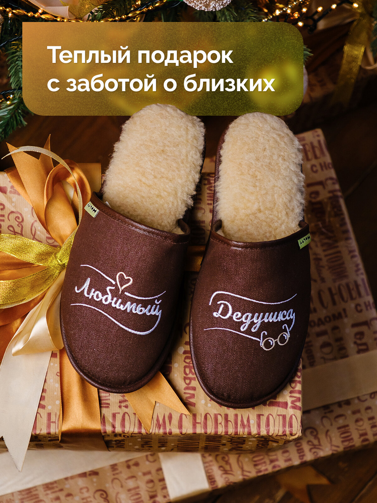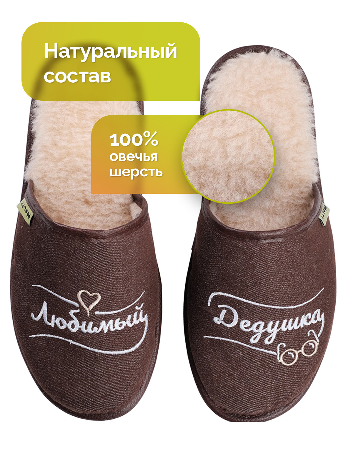 Тапочки HOLTY Подарок любимым, размер 42, коричневый 1 874 ₽