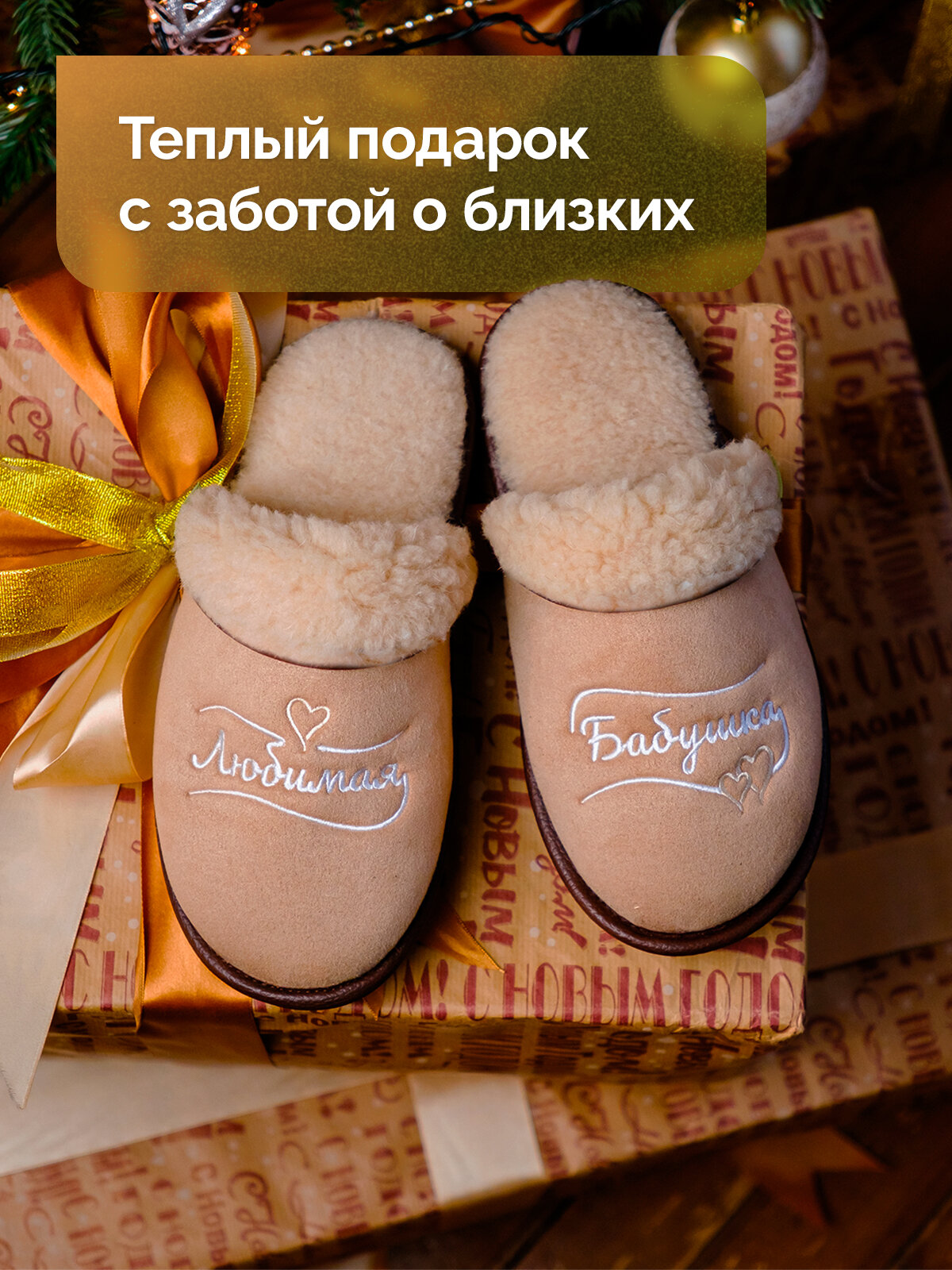 Тапочки HOLTY Подарок любимым, размер 36, бежевый 1 869 ₽