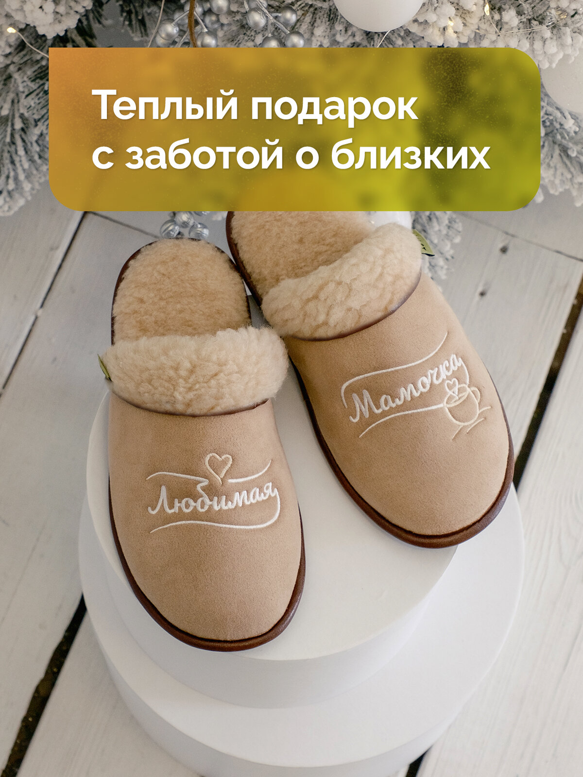 Тапочки HOLTY Подарок любимым, размер 36, бежевый 1 869 ₽