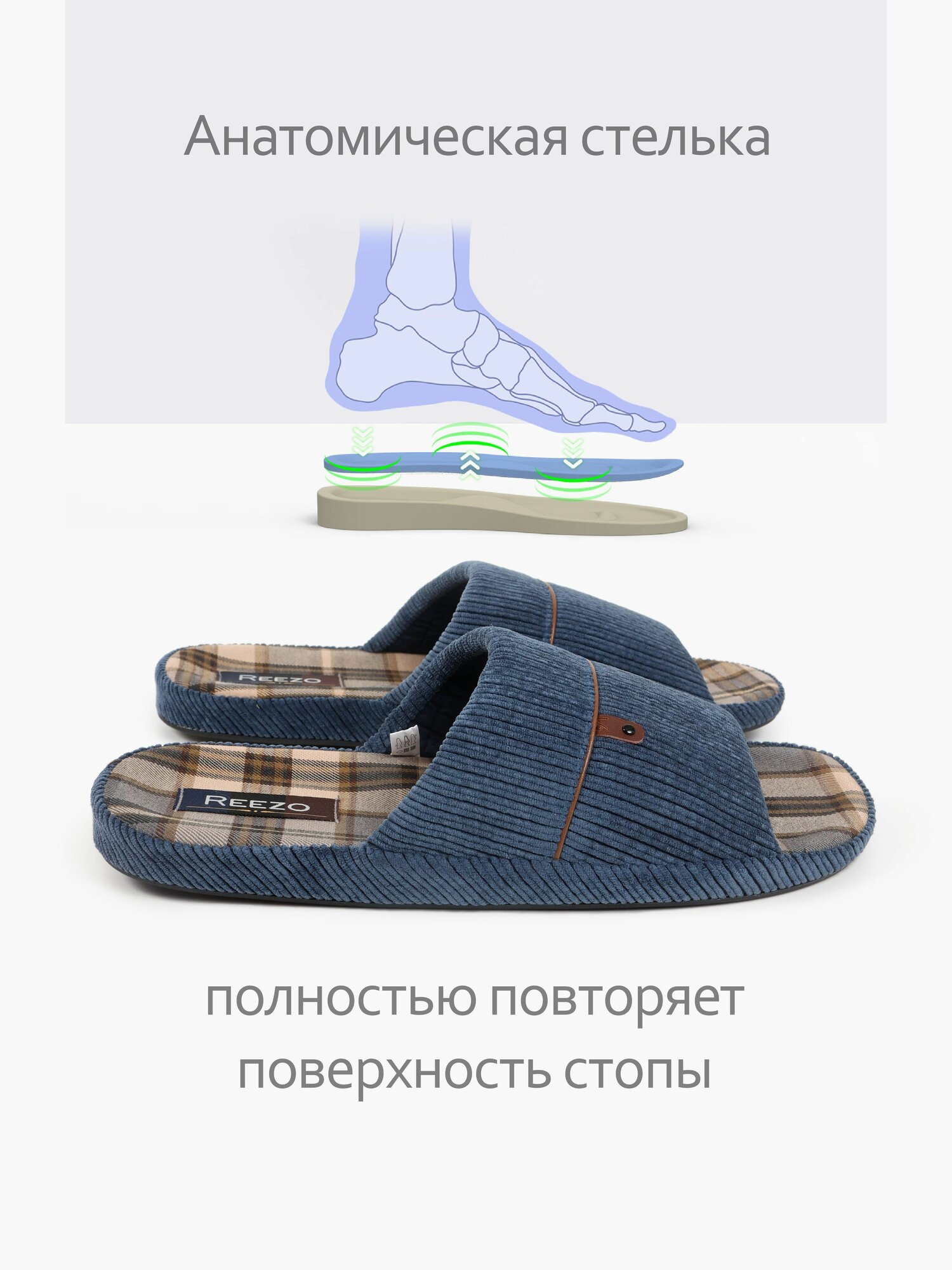 Тапочки Reezo, размер 43-44, синий 1 721 ₽