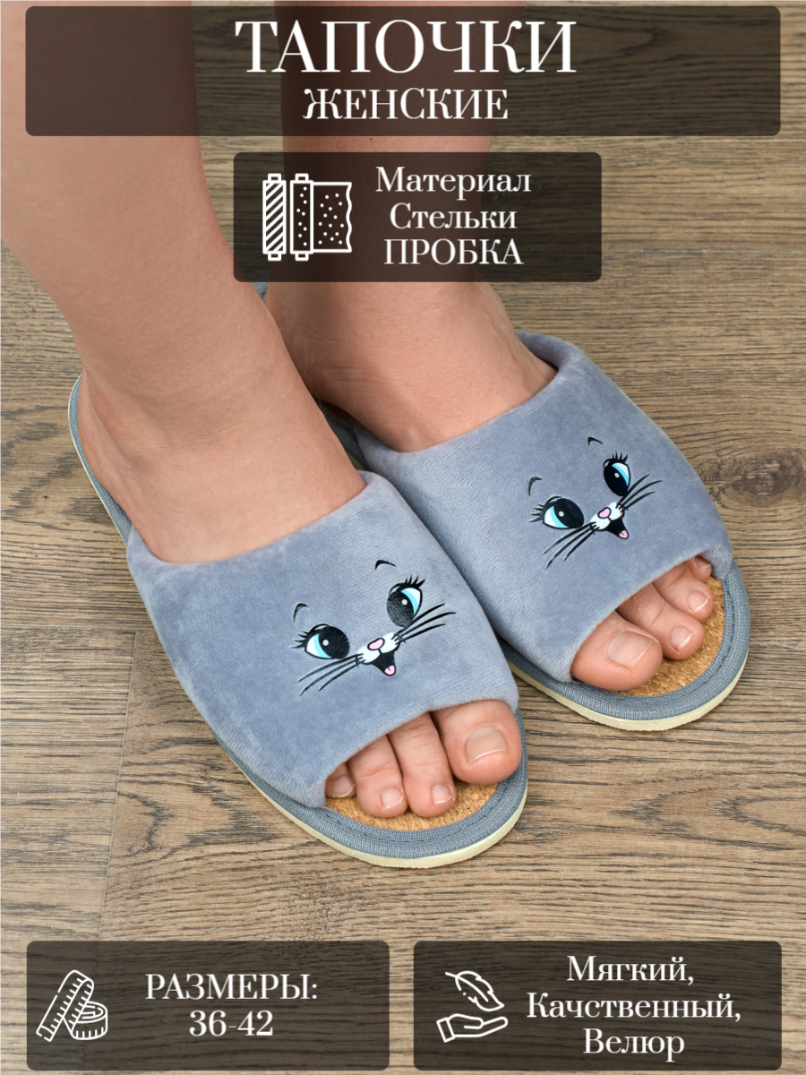 Тапочки LepiloV, размер 36, серый вельвет 530 ₽
